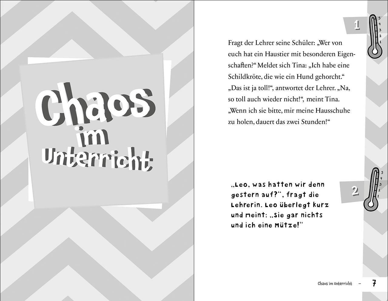 Originell und unglaublich lustig! Mit diesen 333 Witzen rund um das Thema Schule ist Spass für die ganze Familie garantiert. Für alle grossen und kleinen Witzefreunde ab 8 Jahren. Hier kann sich jeder kugelrund lachen, denn die Witze werden mit humorvollen Schwarz-Weiss-Cartoons grossartig untermalt. Mit Witz-O-Meter - hier kannst du jeden Witz bewerten. Ein Witzebuch zum Selberlesen oder Weitererzählen. Und Platz für deine Lieblingswitze gibt es auch noch!