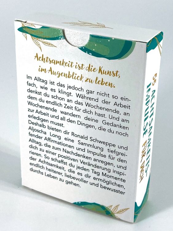 Achtsamkeit ist die Kunst, im Augenblick zu leben. Im Alltag ist das jedoch gar nicht so einfach, wie es klingt. Während der Arbeit denkst du schon an das Wochenende, an dem du endlich Zeit für dich hast. Und am Wochenende wandern deine Gedanken zur Arbeit und all den Dingen, die du noch erledigen musst. Deshalb bieten dir Ronald Schweppe und Aljoscha Long eine Sammlung tiefgreifender Affirmationen und Impulse für den Alltag, die zum Nachdenken anregen, und dich zu einer positiven Veränderung inspirieren. So schaffst du jeden Tag Momente der Achtsamkeit, die es dir ermöglichen, endlich heiterer, liebevoller und bewusster durchs Leben zu gehen.