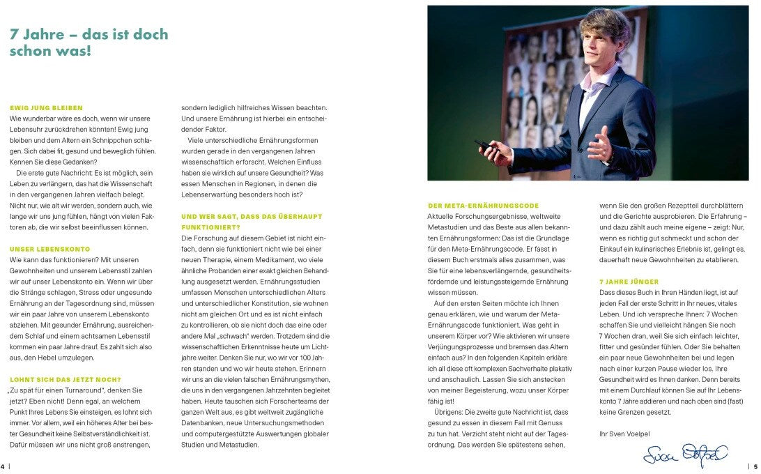 Der führende Altersforscher Prof. Dr. Sven Voelpel ist 1973 in München geboren und seit 2004 Professor für Business Administration an der Constructor University in Bremen. Über Data- und Demografie-Management kam er zur Altersforschung, wo er unter anderem darüber forscht, was Menschen altern lässt und was sie jung hält. Mit seinem Team entwickelte er den kostenlosen Jungbrunnen-Alterstest, bei dem das biologische Alter und nicht das auf der Geburtsurkunde ermittelt werden soll, und die Jungbrunnen-App. Sein neues Buch 7 Jahre jünger in sieben Wochen ist an seinen Jungbrunnen-Kompass und seinen Nummer-eins-Spiegel-Bestseller Die Jungbrunnen-Formel angelehnt.Mit seiner einzigartigen, ganzheitlich durchdachten Herangehensweise zeigt er auch hier, wie mit grossem Spass spielerisch und einfach die eigene Wirklichkeit und Realität für ein dauerhaft junges, gesundes und leistungsfähiges Leben verändert werden kann. Getreu seinem Motto: Wissen wirkt Wunder.