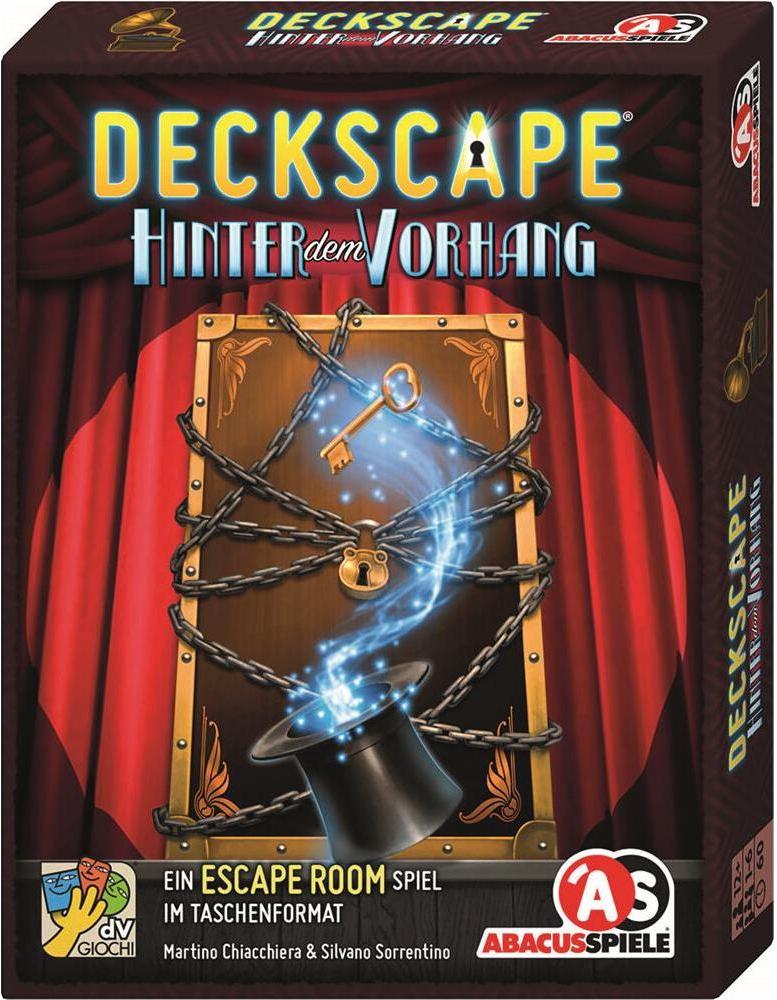 Hinter dem Vorhang ist das fünfte Escape Room Spiel im Taschenformat. In einem anonymen Brief habt ihr Freikarten für die letzte Show des grossen Magiers Lance Oldman erhalten. Ihr nehmt im Publikum Platz und gerade als ihr zu verstehen beginnt, wie einige der Tricks funktionieren, nimmt die Show eine überraschende Wendung. Werdet ihr es schaffen, die Geheimnisse des Magiers zu ergründen und selbst Unglaubliches zu vollbringen?