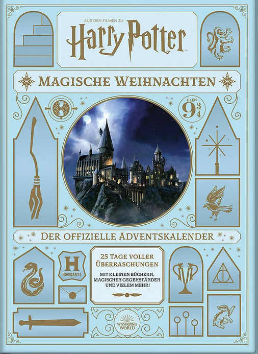 Begleite Harry Potter, Ron Weasley und Hermine Granger in die weihnachtliche Zauberwelt von Hogwarts. Tag für Tag gibt es neue magische Überraschungen: zauberhafte Postkarten, Sticker, ein Notizbuch, einen besonderen Schlüsselanhänger und vieles mehr. Außerdem gewähren spannende Booklets Einblicke in die Welt der Harry-Potter-Filme. Über 40 herausnehmbare Extras zum Sammeln lassen die Herzen aller Harry-Potter-Fans höherschlagen und garantieren eine zauberhafte Adventszeit! Über 40 Überraschungen für 25 Tage!