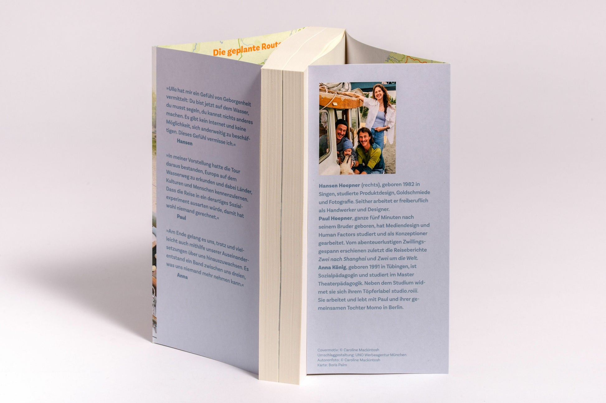 Hansen Hoepner ist Abenteurer und Produktdesigner. Fünf Minuten vor seinem Bruder Paul geboren, studierte er an der Akademie für Bildende Künste Maastricht Produktdesign, Goldschmiede und Fotografie. Seit 2014 arbeitet Hansen an dem Kreativprojekt »KAOS« (www.kaosberlin.de) mit und hat sich dort mit einer Werkstatt für Goldschmiede und Produktdesign selbstständig gemacht. Paul Hoepner ist Abenteurer und Mediendesigner. Als jüngerer Zwilling ganze 5 Minuten nach seinem Bruder, aber ebenso am 6.4.1982 in Singen am Hohentwiel geboren. Paul hat nach dem Abitur ein Jahr in Australien verbracht, anschliessend Mediendesign in Köln studiert und in Berlin als Web- und App-Konzeptioner gearbeitet. 2015 schloss er den Studiengang »Human Factors« an der TU Berlin ab. Anna König, geboren 1991 in Tübingen, ist Sozialpädagogin und studiert im Master Theaterpädagogik. Neben dem Studium widmet sie sich ihrem Töpferlabel studio.roiii. Sie arbeitet und lebt mit Paul und ihrer gemeinsamen Tochter Momo in Berlin.