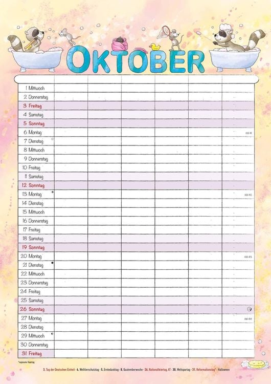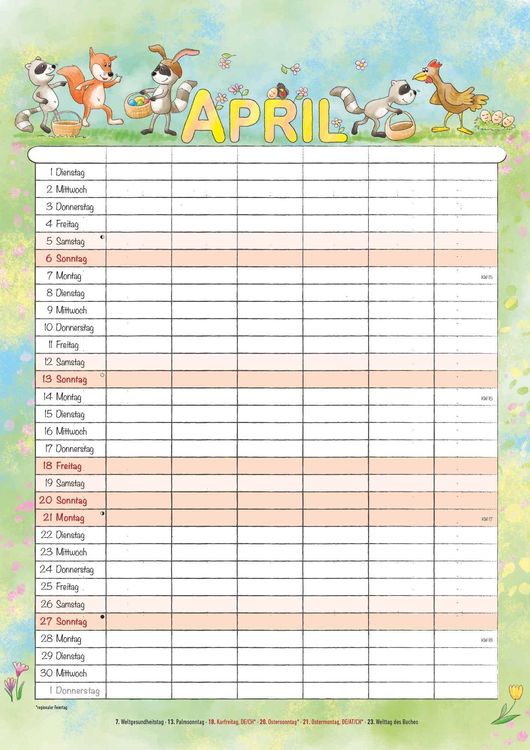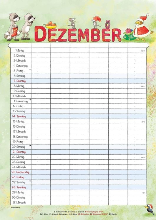 000g/m² Rückwand- Deutschsprachiges Kalendarium- 6 Spalten- Feiertage (DE/AT/CH)- Mit Ferienterminen (DE/AT/CH)- Mit Ringbindung zum Aufhängen und bequemen Umklappen- Bei uns finden Sie eine sehr große Auswahl an Bildkalendern im A3-Format mit den unterschiedlichsten Motiven - da ist für jeden Geschmack etwas dabei!Mit dem Familienplaner Cartoon im Format von 29,7x42 cm und seinen 6 Spalten haben Sie alle Termine von jedem Familienmitglied jederzeit im Blick. Dank der lustigen und farbenfrohen Illustrationen von Silke Leskien gibt es immer etwas Neues zu entdecken - so macht das Planen und Organisieren gleich noch mehr Spaß! Eine Übersicht über die Ferientermine ist zudem eine sinnvolle und hilfreiche Ergänzung. Der "Familienplaner Cartoon 2025" der Marke Alpha Edition ist ein wunderbarer Wandkalender, der Ihnen dabei hilft, den Alltag mit Bravour zu meistern! Das Team der Neumann Verlage wünscht Ihnen viel Freude mit unseren Kalendern!.