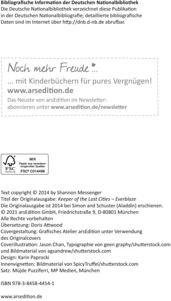 Ars Edition Keeper of the Lost Cities - Das Feuer (Keeper of the Lost Cities 3) (Deutsch, 2021, Shannon Messenger, Doris Attwood)