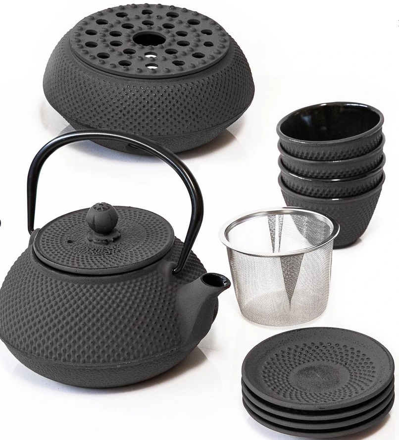 Asia Teekannenset Gusseisen, 10-teilig (Farbe: grau)