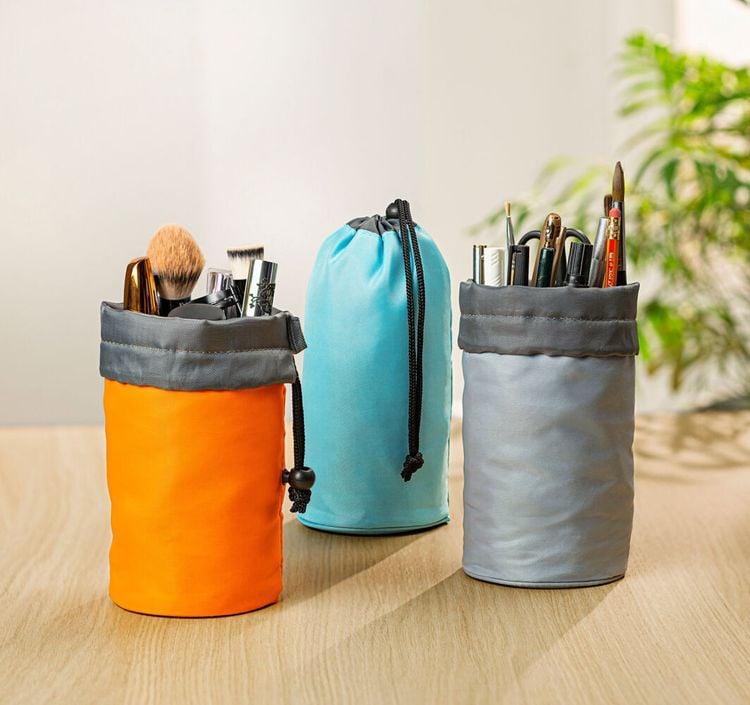 Vielseitige Textil-Beutel Zum Aufbewahren, Ordnen, Organisiseren, für unterwegs Für Bastel- oder Büroutensilien, für Kosmetik u.v.m. Set mit 3 Taschen in 3 Farben Diese Aufbewahrungstaschen sind echte Multitalente beim Verstauen, Ordnung halten und Mitnehmen In diesem praktischen Beutel-Trio ist Kleinkram genauso gut untergebracht wie kleine Schätze, für die man bisher vergebens einen Platz gesucht hat: Nähutensllien, Stifte, Bastelbedarf oder Kosmetik. Auch als Kulturbeutel auf Reisen sind die kleinen Aufbewahrungstaschen praktisch. Die praktischen Aufbewahrungstaschen sind nicht nur geniale Ordnungshelfer, auch in ihrem Inneren ist für Übersicht gesorgt: jede hat innen eine Netztasche und ein Gummi-Einsteckband zum Fixieren von Stiften, Scheren u.v.m. Zum Verschließen hat jede Tasche einen Kordelband, an dem die Beutel auch aufgehängt werden können. Die Aufbewahrungstaschen sind wasserabweisend und leicht zu reinigen. Einfach rundum praktische Aufbewahrungsbeutel, für die garantiert jeder einen Bedarf hat - wetten? Aufbewahrungstaschen "Multi", 3er-Set Set mit drei Farben: gelb, grau, hellblau zum Aufhängen, Hinstellen oder Mitnehmen je mit Zugbandverschluss, Netz-Innentasche und Gummiband innen wasserabweisend, leicht zu reinigen Maße: je Ø 10 cm, Höhe 21 cm Material: 100% Polyester Bestellen Sie sich die drei praktischen Aufbewahrungstaschen doch gleich jetzt direkt hier online!