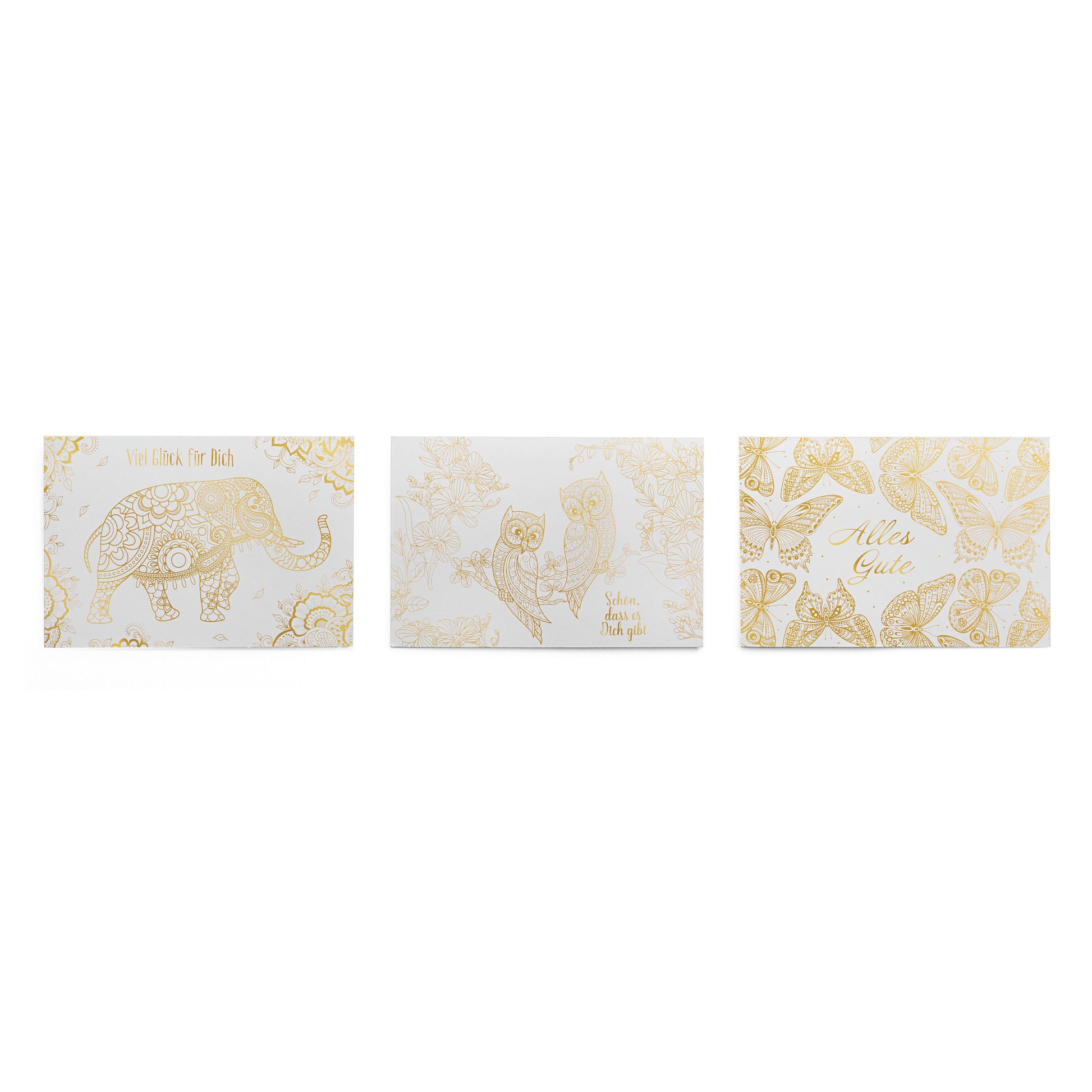 Edel, persönlich und fantasievoll: Hier können Sie die Karten an Ihre Lieben selbst ausmalen. Mit goldglänzenden Konturen für leichtes Gelingen. Und auch ohne die Karten auszumalen sind sie bereits wunderschön und hochwertig. Der perfekte Kartenvorrat für gute Wünsche zum Geburtstag, als kleines Dankeschön für die Nachbarin oder Kollegin, als Aufmunterung vor Prüfungen und liebe Glücksbotschaften zwischendurch … Jede Klappkarte 11,5 x 17 cm (geschlossen), mit Kuverts.