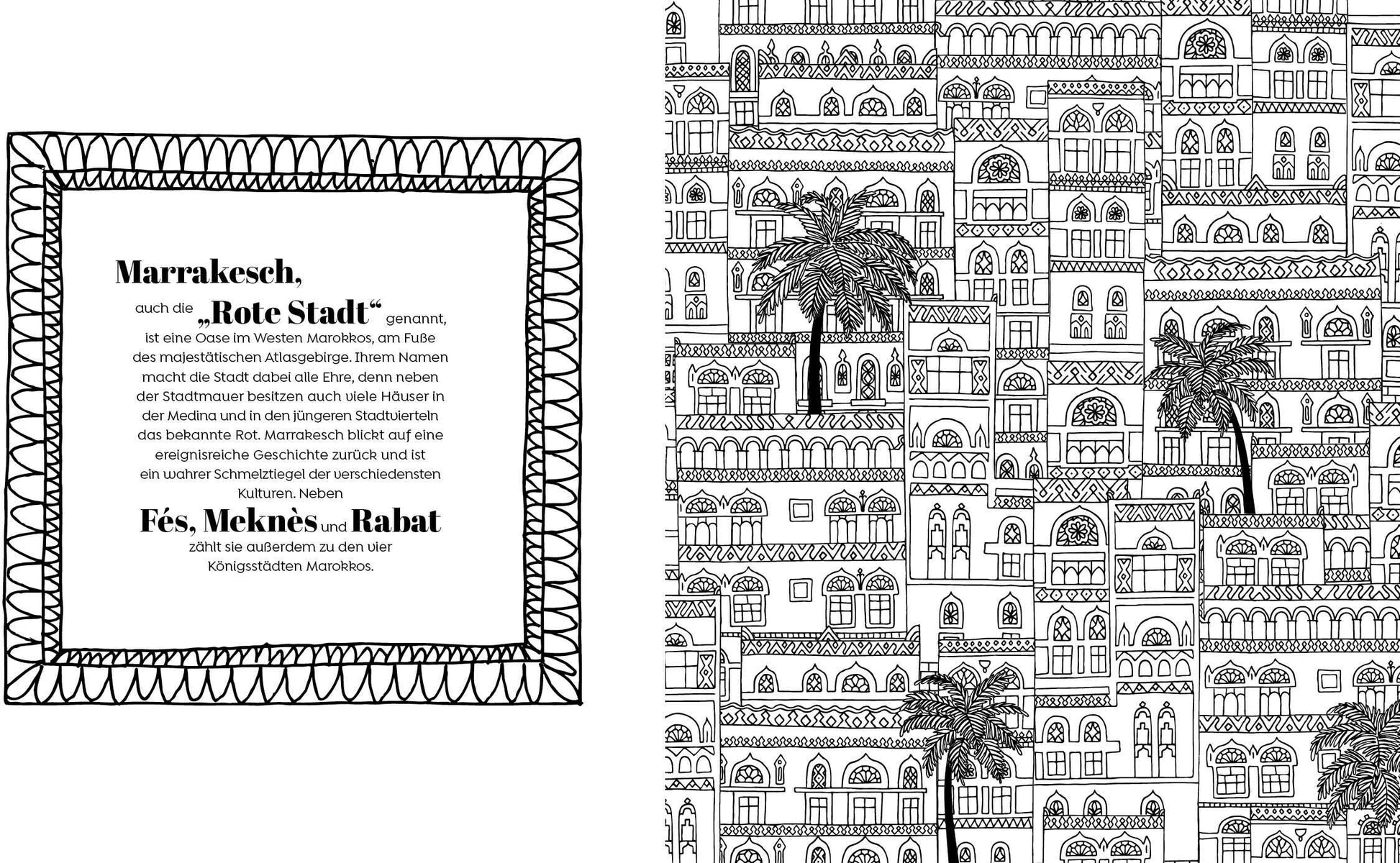 - Die Schönheit der Roten Stadt Marokkos beim Ausmalen entdecken