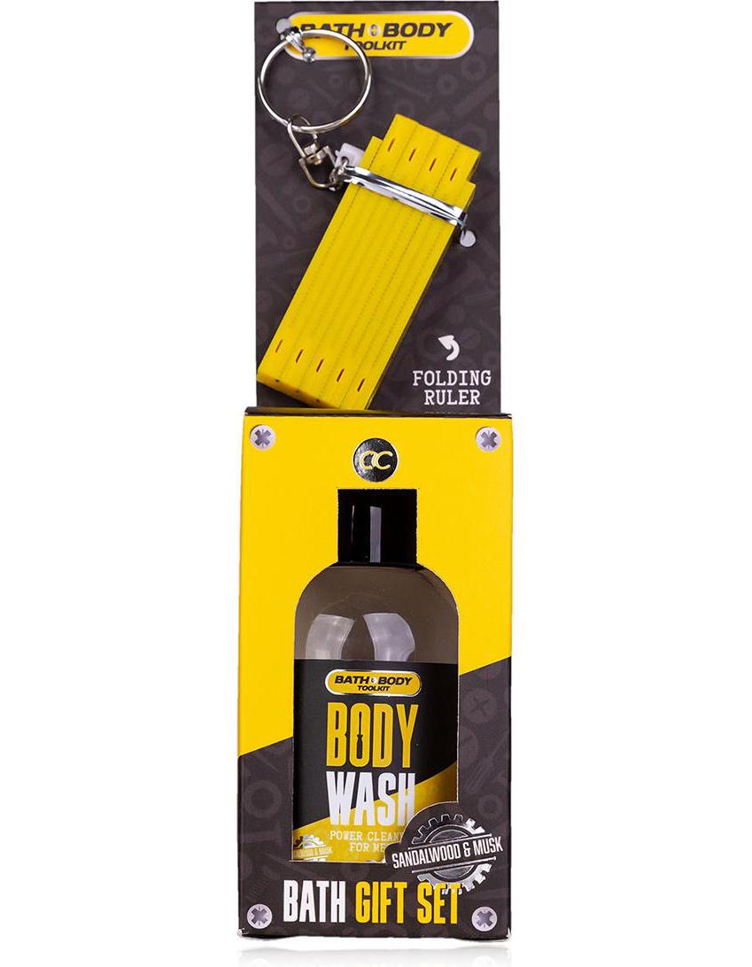 in Geschenkbox, inkl. 100ml Body Wash, Schlüsselanhänger Mini-Meterstab, Duft: Sandalwood & Musk, Farbe: gelb/schwarz, VE 6/24.