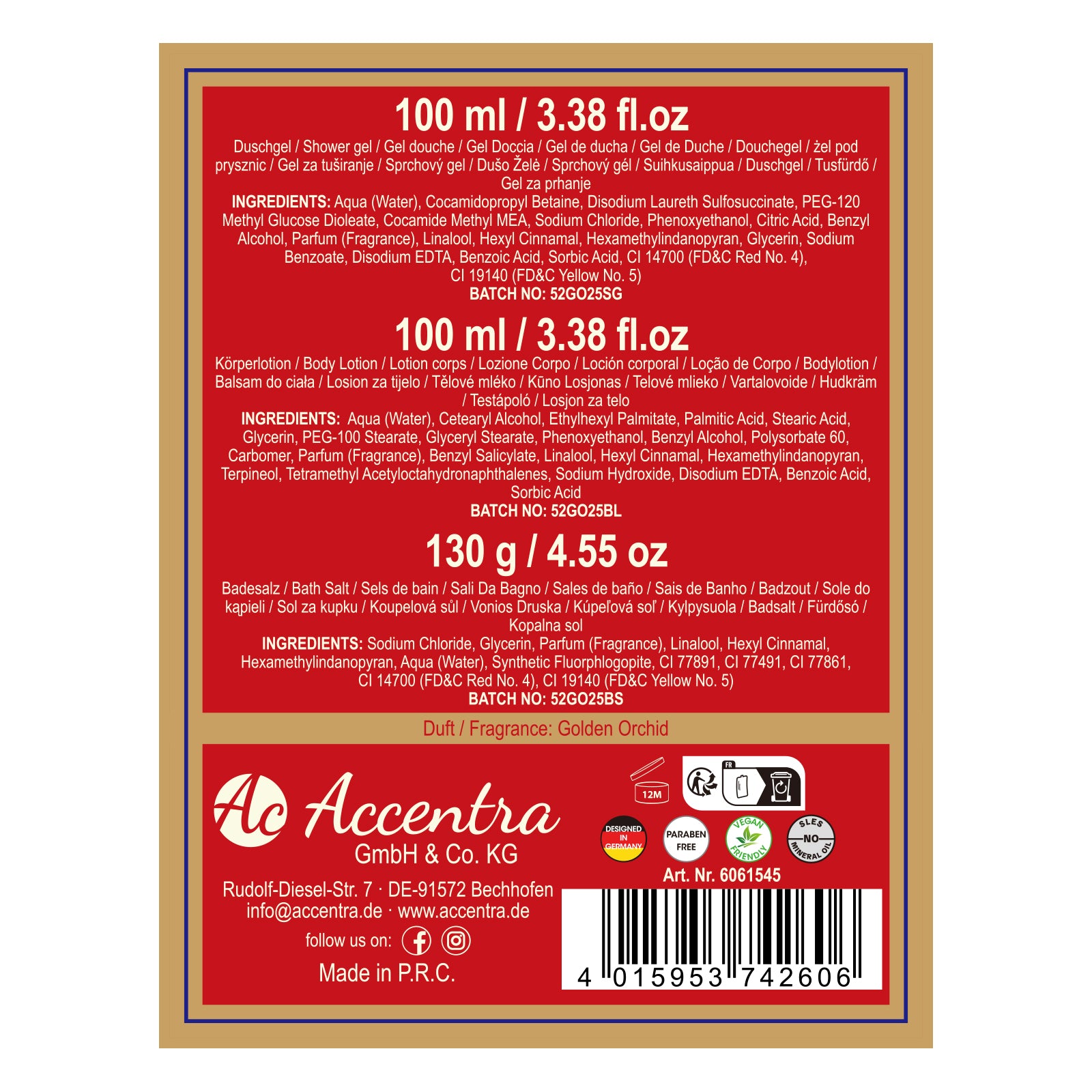Entdecken Sie das luxuriöse Badeset in Form eines roten Pumps, das nicht nur ein Blickfang ist, sondern auch ein wahres Verwöhnprogramm für Körper und Sinne bietet. Dieses exquisite Set enthält drei Flaschen mit dem betörenden Duft "Golden Orchid", darunter je 100 ml Duschgel und Bodylotion sowie 130 g Badesalz. Die elegante rote Schleife verleiht dem Geschenkset eine besondere Note und macht es perfekt für jeden Anlass. Gönnen Sie sich oder Ihren Liebsten ein unvergessliches Spa-Erlebnis zu Hause!