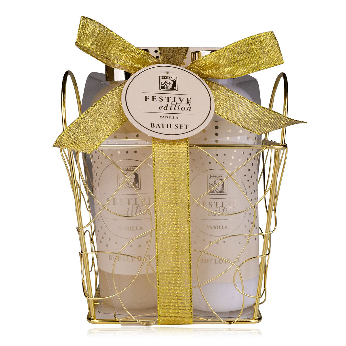 Alle Produkte sind mit einem warm-süssen Vanilleduft verfeinert, der eine behagliche, festliche Atmosphäre schafft. Präsentiert in einem dekorativen goldfarbenen Metallkorb mit eleganter Schleife eignet sich dieses Bath Set ideal als Geschenk zu Weihnachten, Geburtstagen oder anderen besonderen Anlässen – perfekt für alle, die sich oder anderen eine kleine Auszeit gönnen möchten.