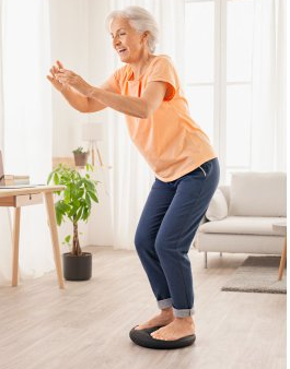 Die Balance-Linse hat zwei verschiedene Oberflächen - eine glatte und eine mit „Spikes“. Die glatte Seite ist zum Sitzen, die Seite mit den Punkten ist zum Schwingen. Wenn du deine Füße barfuß oder in Socken darauf stellst, massieren die Vertiefungen deine Füße, während du Gleichgewicht und Koordination übst.