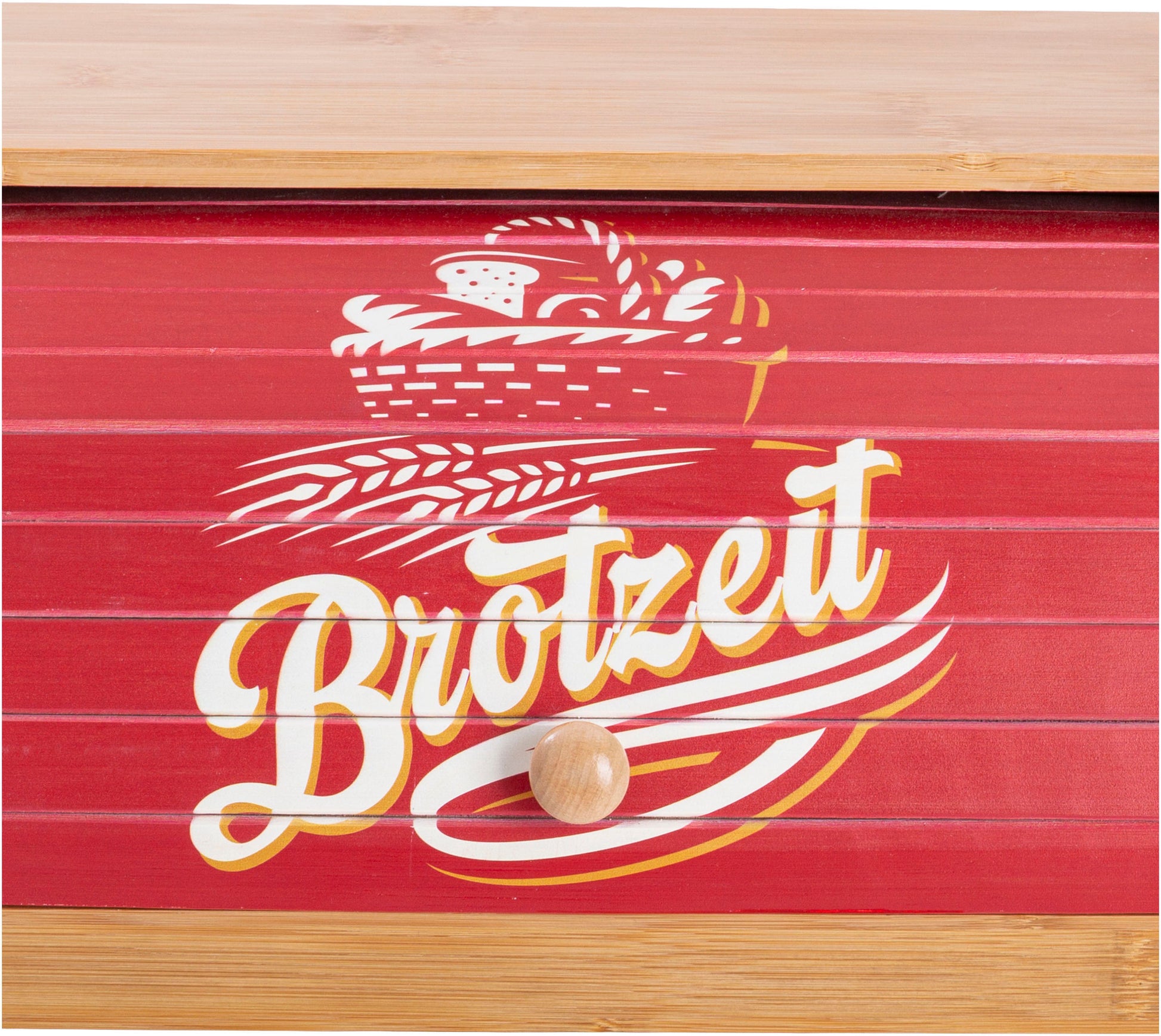 Bei Bambus handelt es sich um hochwertiges, langlebiges Material sowie um einen schnell nachwachsenden Rohstoff, was den Bambus Brotkasten mit Rolldeckel zu einem umweltfreundlichen Produkt macht. Farblich passt der Brotkasten in jede Küche. Das einzigartige „Brotzeit“-Dekor verleiht ihm eine individuelle Note. Das Bambusholz lässt sich ganz leicht feucht ab- und auswischen, sodass der Brotkasten stets hygienisch sauber und einsatzbereit ist.