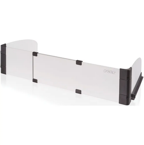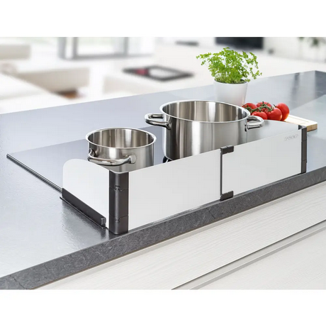 Montage ohne Bohren und Schrauben - raffiniertes Stecksystem für einen einfachen Aufbau - rückstandsfreies Entfernen - ausziehbare Länge: 55 - 65 cm - Höhe: 12 cm - leichte Reinigung - geeignet für Elektro- und Induktionsherde - geeignet für alle Arbeitsplatten - Material: Metall, Kunststoff - Farbe: weiss / schwarz
