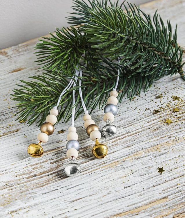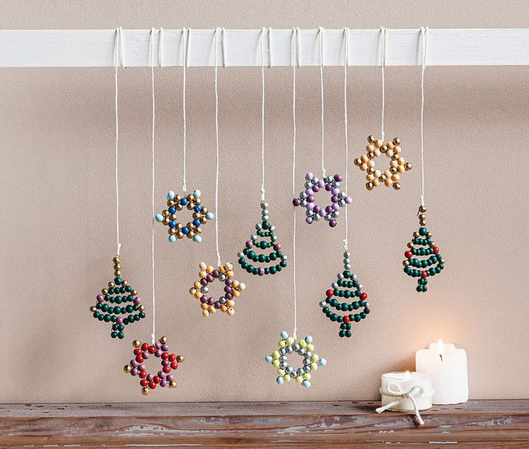 Set für 14 Anhänger Zum weihnachtlichen Dekorieren Ideal auch als kleine Geschenke! Weihnachtsdeko aus Holzperlen - einfach selbst gemacht mit dem Bastelset Holzperlen! Die Weihnachtszeit genießen - z.B. beim Plätzchen naschen und Basteln. Mit diesem Bastelset gelingt es ganz einfach! Und dabei entstehen im Nu schöne Deko-Anhänger aus edlen Holzperlen. Die farbigen Perlen werden dabei ganz einfach nach Anleitung aufgefädelt. Die fertigen Tannenbäume, Sterne und Perlenhänger machen sich wunderschön als Fenster- oder Türschmuck, am Christbaum oder an einzelnen Zweigen. Auch zum Verzieren und Aufwerten von Geschenken sind sie bestens geeignet. Das Bastelset reicht für 6 Sterne, 4 Tannenbäume und 4 Perlen-Hänger mit Glöckchen. Auch eigene Kreationen sind möglich! Bastelset Holzperlen "Stern, Tanne und Hänger", 366-teilig Set für 6 Sterne, 4 Tannen und 4 Hänger. Mit: goldfarbenem Draht, Ø 0,3 mm, 7 Meter Länge weißer Baumwollschnur, Ø 1mm, 2 Meter Länge 224 Holzperlen, Ø 6 mm: 27 x dunkelrot, 18 x hellrot, 36 x goldfarben, 6 xblau, 12 x hellblau, 16 x holzfarben, 24 x orange, 9 x dunkellila, 9 x helllila, 27 x silberfarben, 12 x limone, 28 x grün 124 Holzperlen, Ø 4 mm: 26 x silberfarben, 26 x goldfarben, 72 x grün 4 Holzperlen, Ø 10 mm: 2 x silberfarben, 2 x goldfarben 8 Holzperlen, Ø 8 mm: natur 4 Metall-Glöckchen, Ø 10 mm: 2 x silberfarben, 2 x goldfarben Bestellen Sie sich das große Bastelset für weihnachtliche Anhänger aus Holzperlen am besten gleich jetzt hier online!