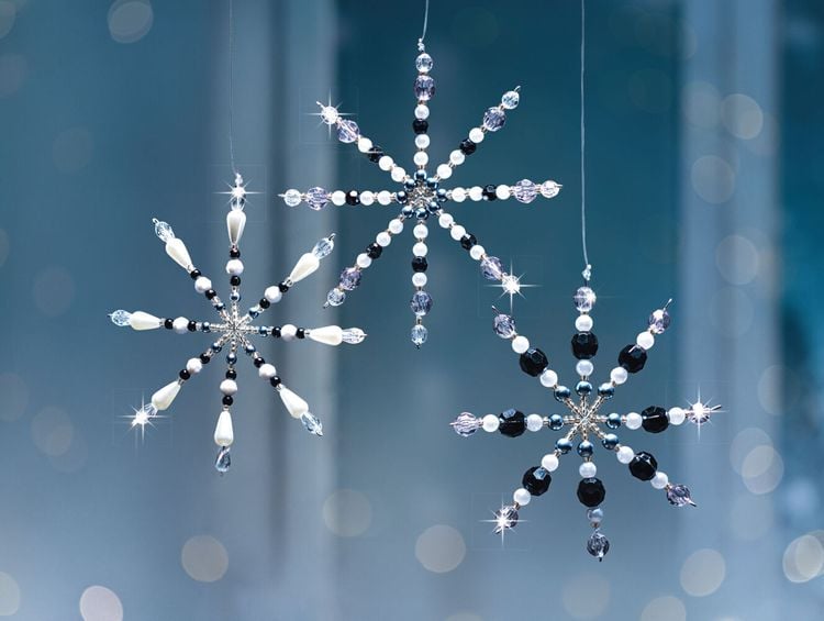 Bastel-Set für 6 edle Perlensterne Ideal als Fensterdekoration, Geschenkanhänger, Christbaumschmuck Mit 528 Perlen in verschiedenen Farben und Größen Geschenktipp! Elegante Perlen-Sterne selbst gestalten Sterne aus Perlen sind in der Advents- und Weihnachtszeit ein besonders schöner Schmuck fürs Fenster, an der Türe oder an einem Zweig aufgehängt. Die filigranen und edel schimmernden Perlen-Sterne machen überall eine gute Figur. In diesem DIY Bastelset finden Sie alles, was Sie für 6 Sterne brauchen. Das Ergebnis sind in jedem Fall wunderschöne, einzigartige, selbstgemachte Kunstwerke in edlen Schwarz-weiß und Grautönen. Das Gestalten der Sterne geht kinderleicht und macht viel Spaß - Sie können sich die Sterne ganz nach Ihren Farbwünschen zusammenstellen oder nach der Abbildung im Katalog bzw. hier im online-Shop. Sie brauchen dazu nur die Perlen in der gewünschten Reihenfolge auf die Stern-Rohlinge aufzufädeln. Die Enden dann am besten mit einer Drahtzange umbiegen. Fertig! Jetzt nur noch aufhängen oder verschenken! Bastelset Perlensterne "Elegance", 534-teilig: 6 Sternrohlinge aus Draht, je Ø 10 cm 528 Kunststoff- bzw. Acryl-Perlen in verschiedenen Farben und Formen: grau, schwarz, transparent und weiß facettiert, metallic anthrazitfarben, champagnerfarben, transparent, perlmuttfarben; 3 - 12 mm Länge alles übersichtlich in Fächern verstaut in transparenter Box aus Kunststoff Schmücken Sie Ihr Zuhause mit diesen eleganten Perlensternen - bestellen Sie das Bastelset gleich jetzt hier online!