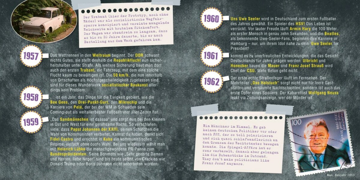 Man kreischte zu den Beatles oder tanzte Rock 'n' Roll, band sich Blumen ins Haar und der Fernseher feierte seinen Siegeszug in die heimischen Wohnzimmer - wer in den 50ern geboren ist, wird sich daran und an noch so vieles mehr erinnern.