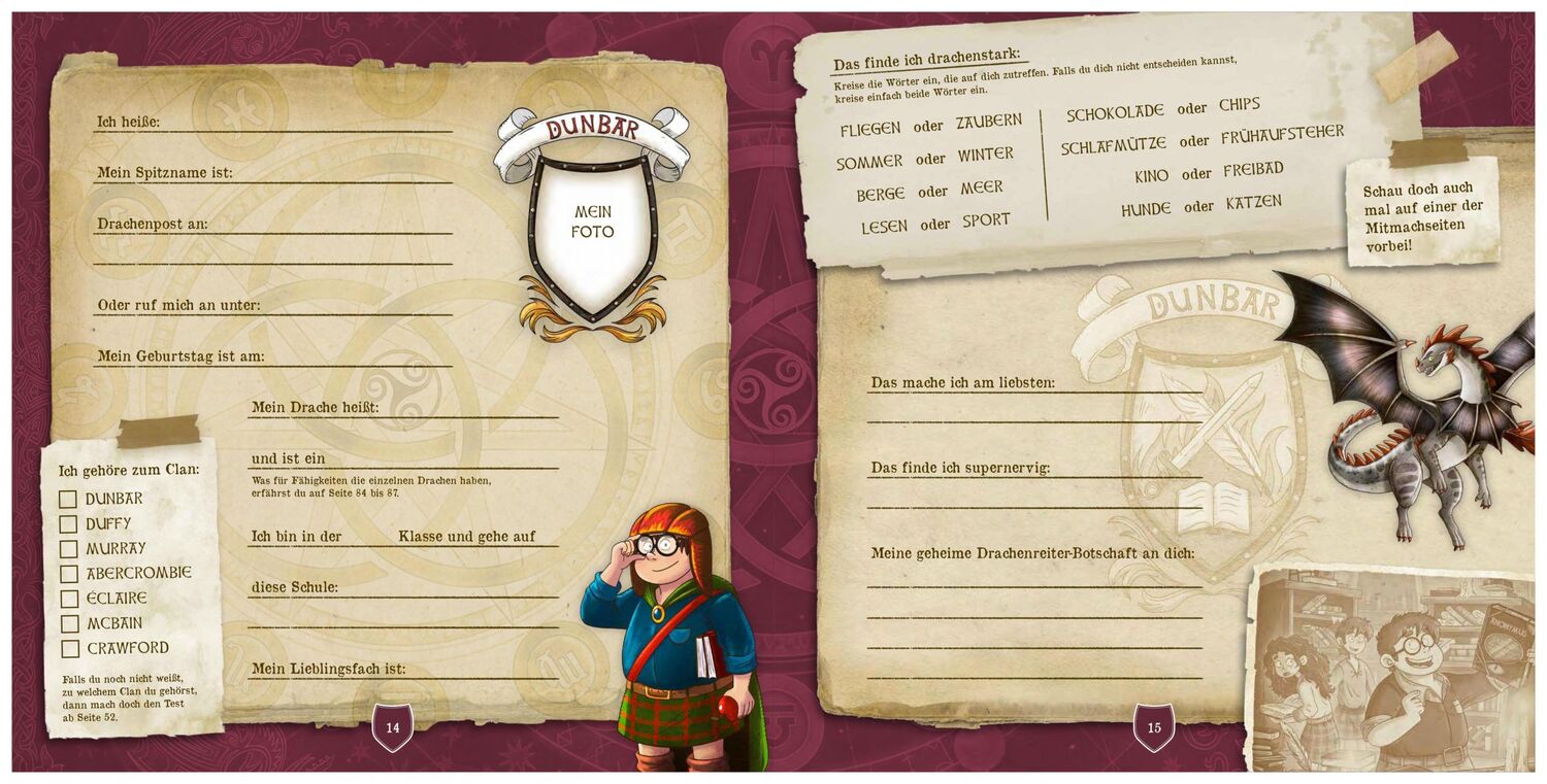 Henry, Lucy und Arthur gehen auf die geheime Drachenschule und sind beste Freunde. Werde auch du ein echter Drachenreiter und lass all deine Freundinnen und Freunde in dieses Buch hineinschreiben. Finde heraus, zu welchem Clan sie gehören, welcher ihr Lieblingsdrache ist und ob sie lieber eine Runde Drachenball spielen oder es sich in der Bibliothek der Wolkenburg mit einem dicken Buch gemütlich machen würden. Dieses Freundbuch ist ein absolutes Muss für alle Fans der Serie und das perfekte Geschenk für jede Gelegenheit!