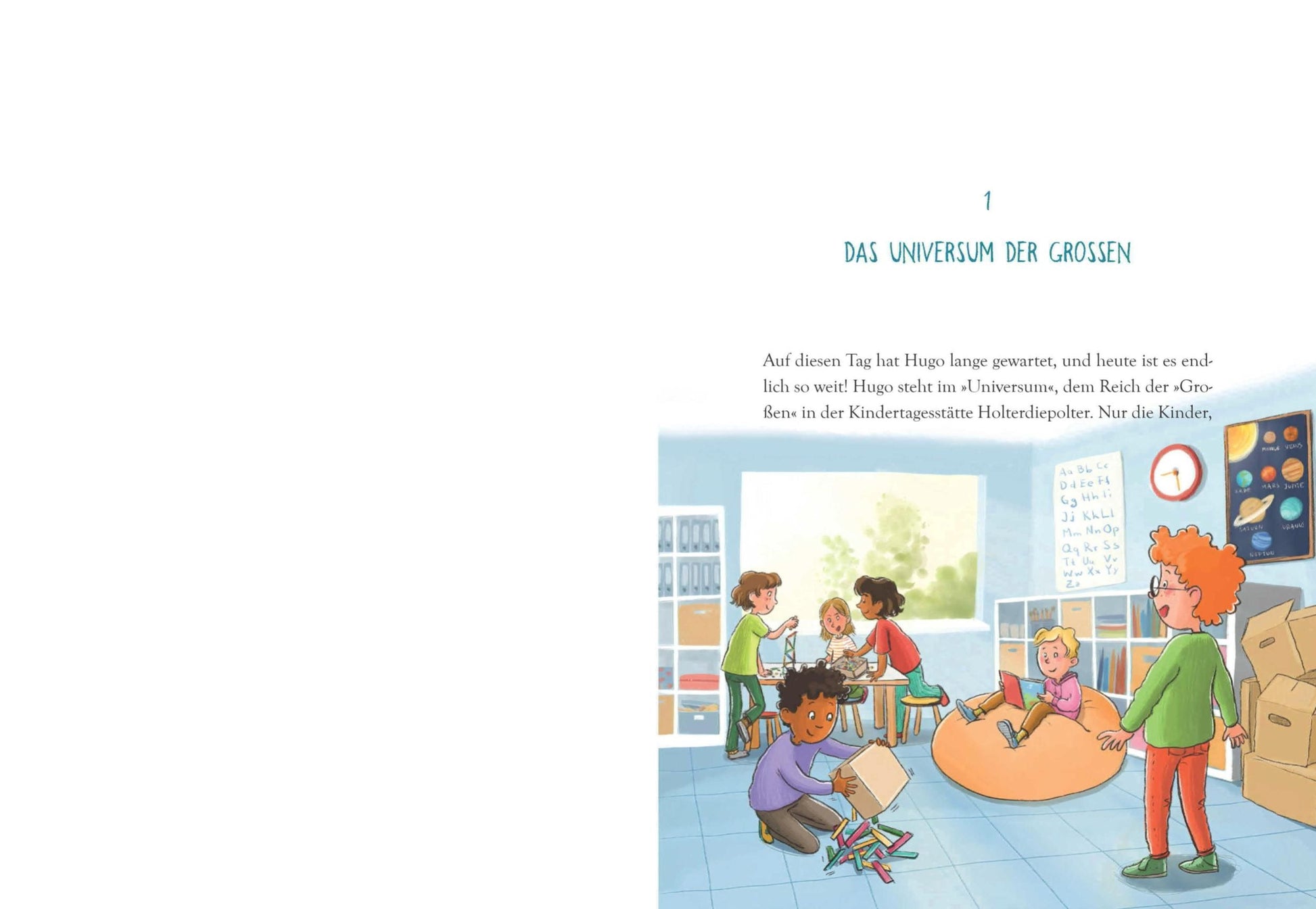 Für die "Großen" der Kita Holterdiepolter heißt es bald: Tschüss, Kindergarten! Bis dahin gibt es noch so viel zu erleben, wie den Ausflug zur Polizeiwache, bei dem Elif und Linus sich in ein echtes Polizeiauto setzen dürfen. Oder die Übernachtungsparty in der Kita. Und dann ist er da, der große Tag der Einschulung, und das Kribbeln im Bauch nimmt zu. Mit Schultüte und Ranzen geht es zur Feier und in die erste Schulstunde. Ob die anderen auch so aufgeregt sind? Am zweiten Schultag steht Hugo vor der Frage, wo eigentlich das Klo ist. Und was man in der Nachmittagsbetreuung alles erlebt. Eins ist sicher: In der Schule warten viele neue Freunde und eine Menge Spaß!