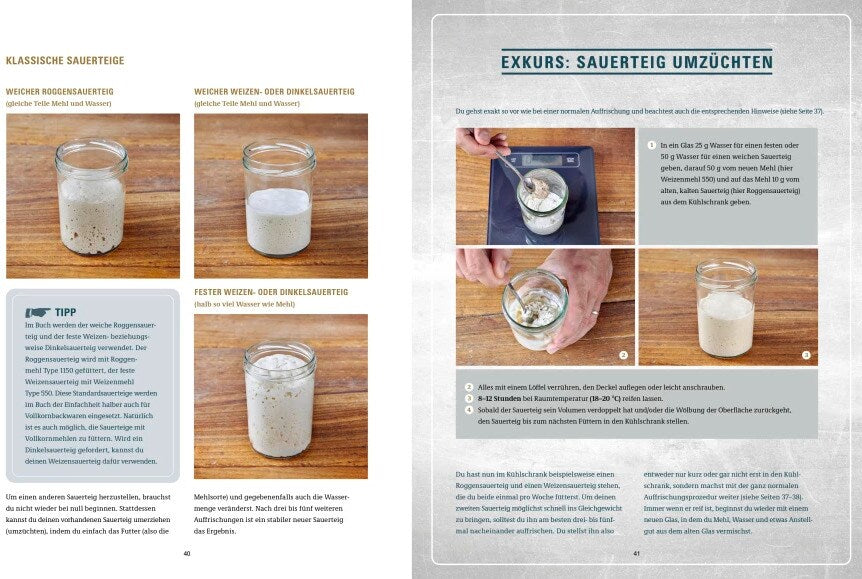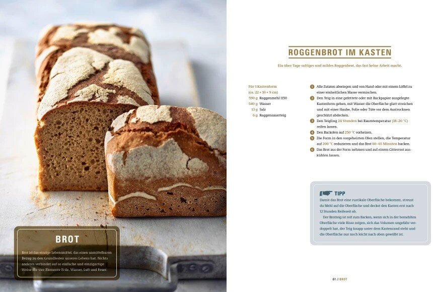 Besonderer Geschmack und höchste Bekömmlichkeit sind die Eigenschaften der 60 Klassiker wie Roggenbrote, Schusterjungen, Schrotbrot oder Pumpernickel. Darüber hinaus bietet das Buch viele Rezepte aus Weizen und Dinkel, etwa für Baguettes, Ciabatta oder Frühstücksbrötchen. Auch Süßes wie Milchbrötchen, Kuchen, Brioche und Franzbrötchen lässt sich so sicher mit Sauerteig backen. Mit präzisen Schritt-für-Schritt-Anleitungen gelingt alles wie von selbst. Ein umfassender Grundlagenteil erklärt Hintergründe und gibt praktische Tipps, um auf die natürlichste Art, die es gibt, Brot zu backen.