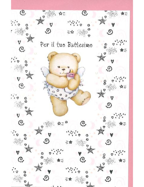 BIGLIETTO BATTESIMO ROSA C/RILIEVO E FOI