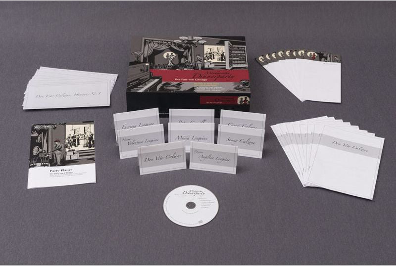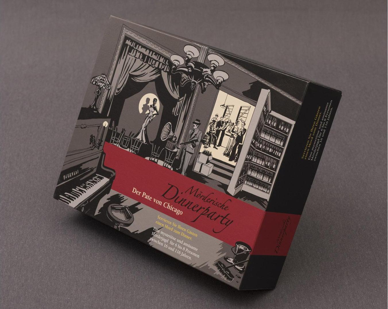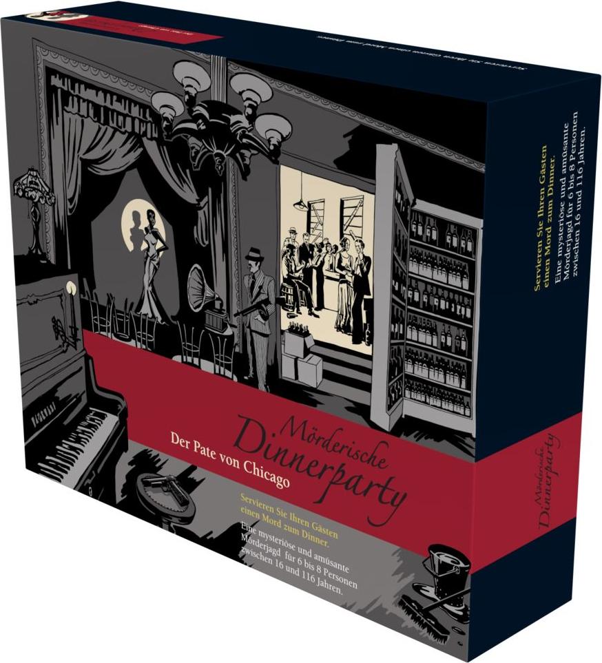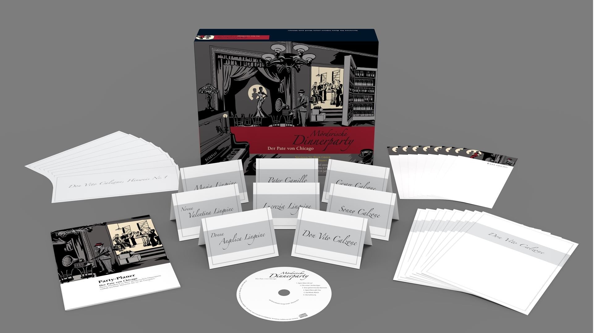 Mörderische Dinnerparty - Der Pate von Chicago Chicago 1931 - Schlechte Zeiten für die Mafia: Präsident Roosevelt plant, die Prohibition abzuschaffen - und damit den Gangstern ihr lukrativstes Geschäft zu verderben. Angesichts der brisanten Lage verbünden sich die verfeindeten Clans der Calzone und Linguine. Doch dann wird Pater Angelo - der Beichtvater der beiden Familien - von einer Maschinengewehrsalve durchsiebt. Eines ist klar: der Mörder ist Mitglied der Cosa Nostra. Für 6 bis 8 Spieler ab 16 Jahren. Spieldauer: 180 bis 240 Minuten