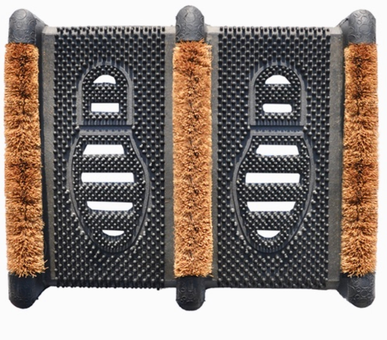 Diese Outdoor-Fussmatte mit Borsten wischt den Schmutz von Schuhen und Stiefeln. Sie besteht aus Kokosfasern in Kombination mit Gummi. Die Kokosbürsten sorgen dafür, dass gröbster Schmutz entfernt wird.