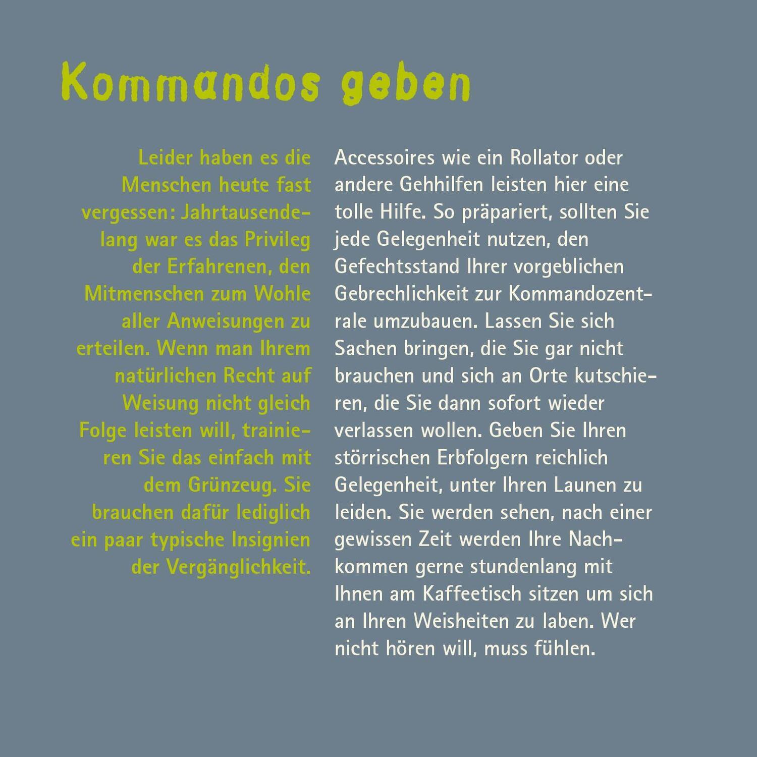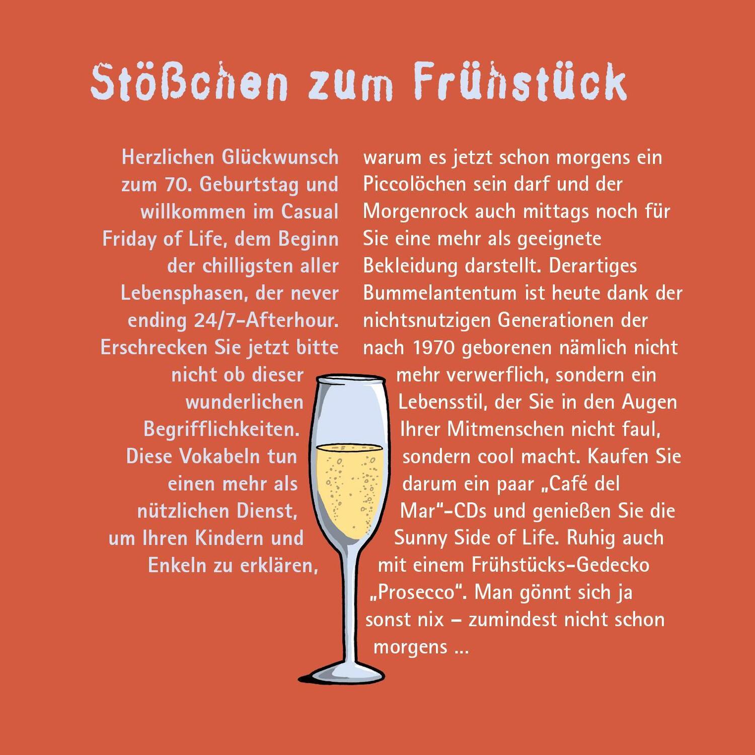 Nicht genug damit, dass man mit diesem runden Geburtstag endgültig in die Senioren-Schublade gesteckt wird. Nein, da muss man auch noch seichte Verslein und Rentner taugliche Geschenke über sich ergehen lassen. Aber nicht mit diesem Buch, das mit Witz die vielen positiven Seiten der siebten Null beleuchtet. Was man ab 70 alles tun darf? Na, sich kaputtlachen auf jeden Fall!