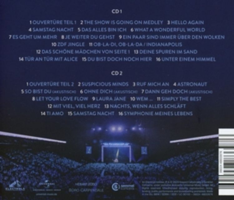 Howard Carpendale veröffentlicht Live-Doppelalbum zur großen "Die Show meines Lebens"-Tournee: Erhältlich als 2CD und Deluxe Edition. Es war der fulminante Schlusspunkt seiner umjubelten Tournee mit dem treffenden Titel "Die Show meines Lebens": Aufgezeichnet im Mai 2022 in der restlos ausverkauften Hamburger Barclays Arena. Zwei Sets voller Klassiker und Gänsehaut-Momente: Fürs große Abschlusskonzert der gefeierten "Die Show meines Lebens"-Tour lassen Howard Carpendale und seine Band das Motto des Abends wahr werden, wenn sie nur die größten Hits aus 50 Jahren aufregend und abwechslungsreich auf die Bühne und damit die Arena in der Hansestadt zum Kochen bringen. Auf 2CDs mit mehr als zwei Stunden Spielzeit vereint "Die Show meines Lebens - Live in Hamburg" die komplette Abschlussshow, über 30 Titel - sowohl Klassiker und Cover, persönliche Anekdoten und Partyhits, überarbeitete Versionen und überraschende Medleys.