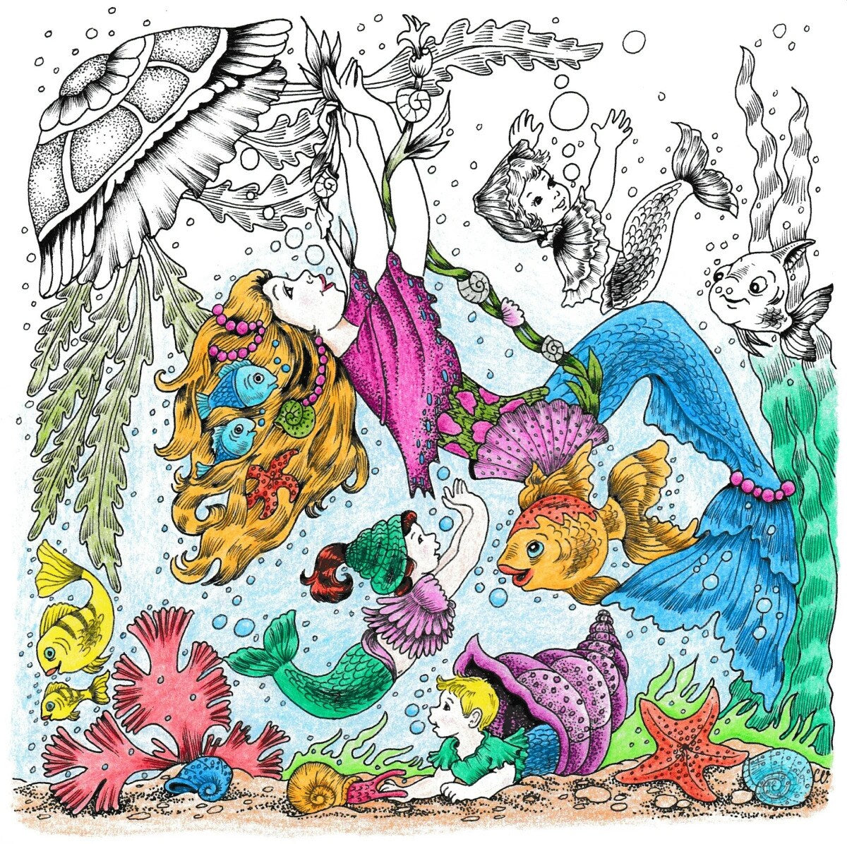 Beim Ausmalen in die schillernde Welt der Meerjungfrauen abtauchen