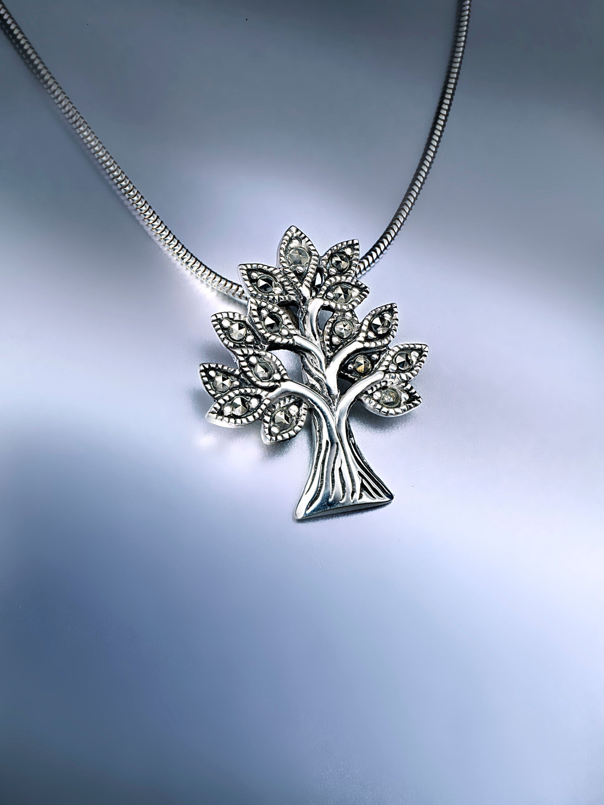 Funkelndes Lebenssymbol - Anhänger "Tree" mit Markasit, 925 Silber