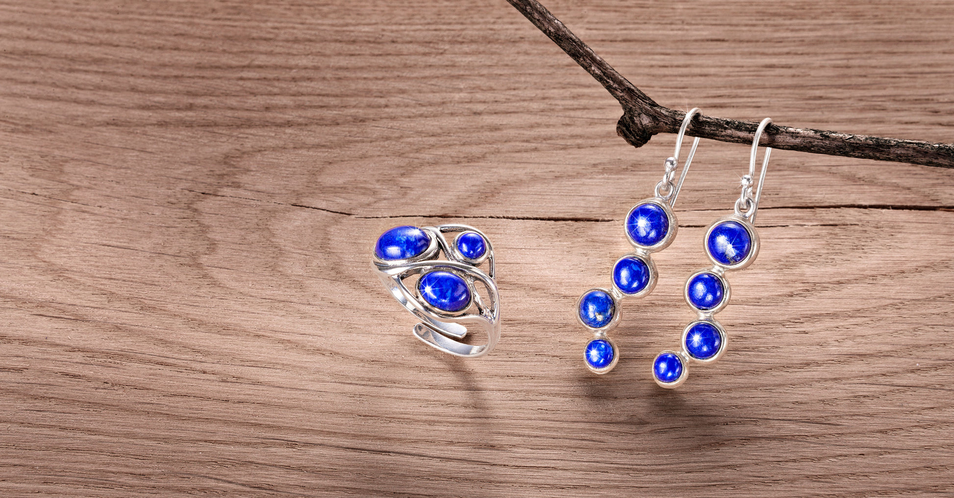 • lluftig-leiches Design mit 3 Lapislazuli-Cabochons: 10 x 7 mm, 7 x 5 mm, Ø 4 mm