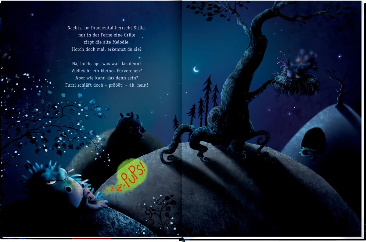 Auf einmal ist Knatterdrache Furzipups hellwach. Es knarzt und knackt, es brummelt und grummelt, es schmatzt und ratzt. So kann doch niemand schlafen!
