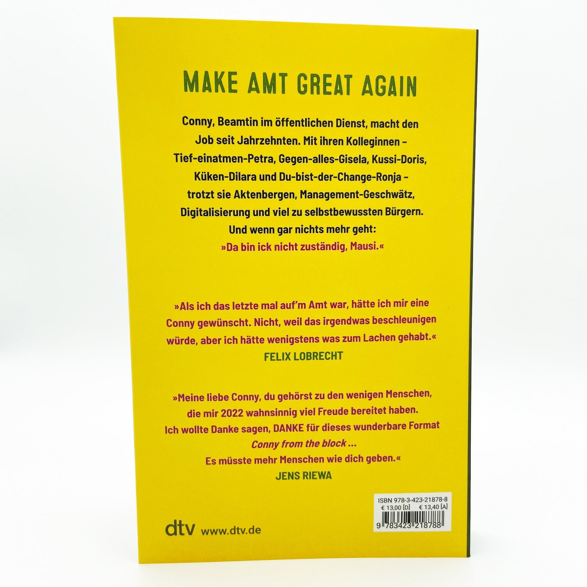 Make Amt Great Again!Conny, das Social-Media-Phänomen - für all jene, die den Amtswahnsinn von innen und aussen kennen. Und all jene, die im Job schon mal »Bin ich hier in ner Behörde oder was?« gedacht haben.