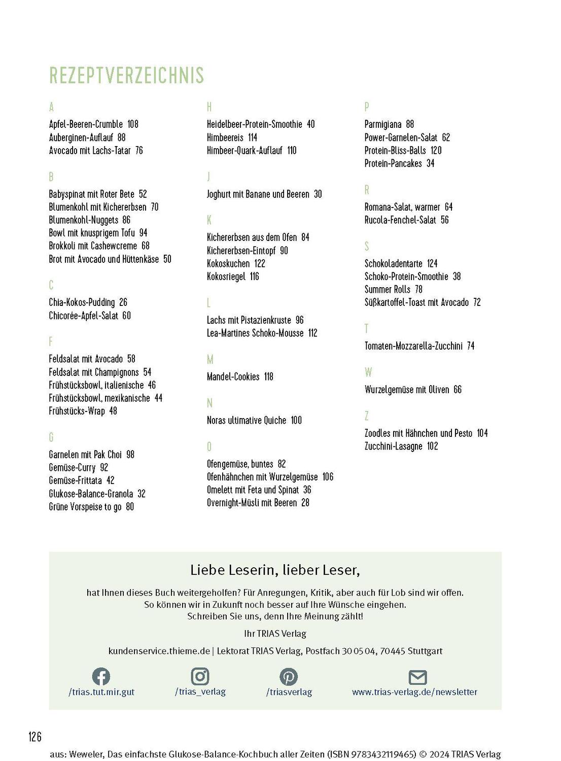 - 50 schnelle Rezepte: proteinreiche Frühstücke, üppige Bowls, knackige Salate, Zoodles mit Hähnchen, Fisch oder Tofu, kleine Gemüsegerichte als Vorspeise, um den Blutzuckeranstieg abzufangen. Und selbst Eis, Riegel und Kuchen findest du hier.