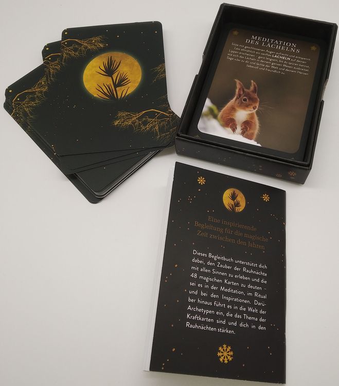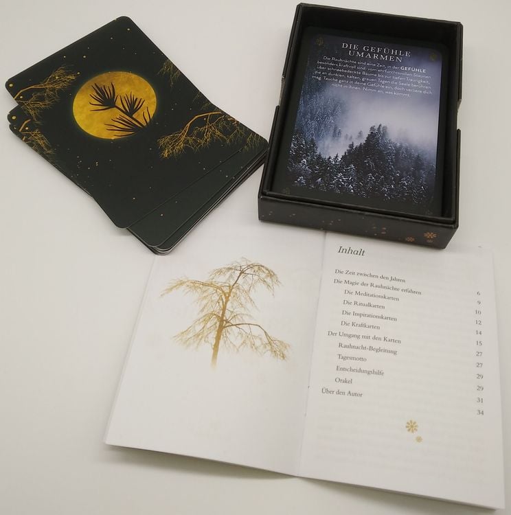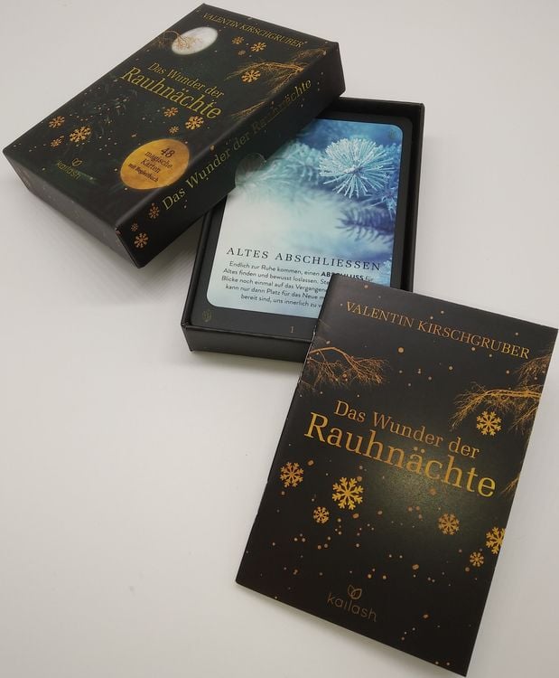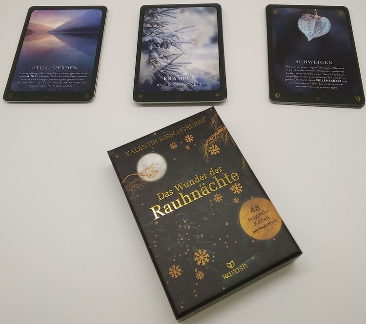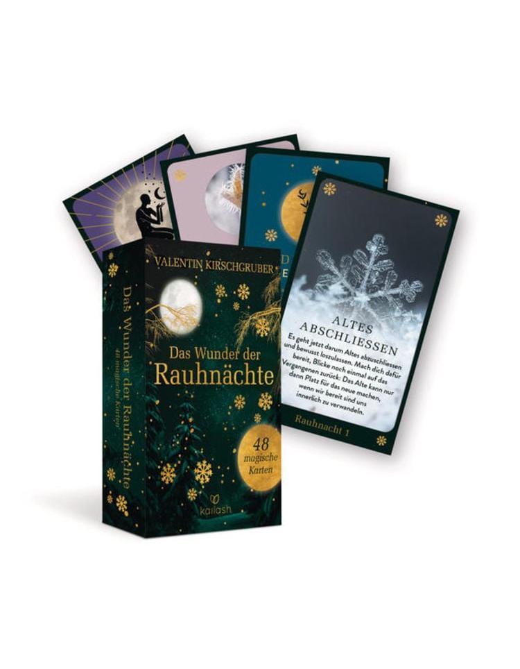 Sagenumwoben, mystisch, geheimnisvoll: Die Rauhnächte – zwischen Weihnachten und dem Dreikönigstag – gelten als Schwellenzeit, in der Dunkel und Licht, Altes und Neues, Vergänglichkeit und Ewigkeit ineinanderfließen. Die Orakelkarten von Valentin Kirschgruber helfen, das Wunder der Rauhnächte auf spielerische, intuitive Weise zu erfahren. Durch stimmungsvolle Meditationen, Inspirationen, magische Rituale und Kraftsymbole zu den jeweiligen Archetypen der heiligen Nächte können wir innehalten und in die Stille eintauchen. Aber auch Altes abschließen, Reinigung erleben und in eine lichtvolle Zukunft blicken. Die 48 Karten, vier für jede der zwölf Rauhnächte, sind wunderschön gestaltet und von magischer Tiefe. Ausstattung: durchgehend vierfarbig; 48 Karten mit 32-seitigem Begleitheft