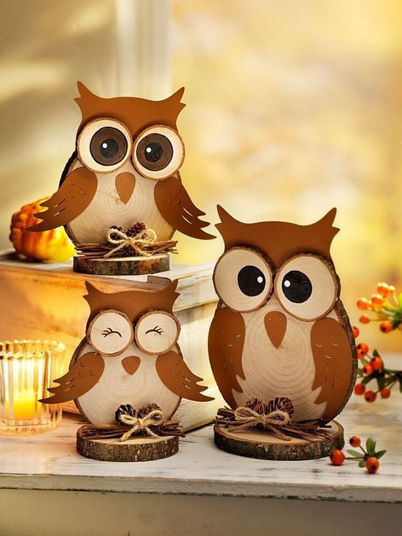 Niedliche Eulen-Familie aus Holz & Metall 3 Größen im Set, Figuren bis 17 cm hoch Jede Eule ist liebevoll verziert Körper & Augen aus Baumscheiben mit Rinde Mit Details aus Metall in Rostoptik Deko-Eulen "Familie Kauz" 3er-Set für Sie und als Geschenkidee Eulen sind ein Symbol für Weisheit und Klugheit, und mit ihren niedlichen Knopfaugen sorgen sie für gute Laune und eine gemütliche Atmosphäre nicht nur im Herbst. Bei Familie Kauz hat jede Eule ihren ganz eigenen Charakter, denn die Figuren bestehen aus Baumstammscheiben mit individueller Maserung. Die natürlichen Jahresringe verleihen den Eulen ein einzigartiges Aussehen, jede Holzscheibe fällt etwas anders aus und ist ein Unikat. Kopf, Flügel und Nasen der Eulen sind aus Metall in Rostoptik. Die Holzscheiben, die für einen guten Stand der Eulen sorgen, sind mit Ästen, zwei Zapfen und einer Jute-Schleife verziert. Platzieren Sie die Deko-Eulen am Fenster, auf dem Sideboard oder Regal überall sorgen diese Holz-Eulen im Handmade-Look für eine stimmungsvolle Atmosphäre. Auch als Geschenk oder Mitbringsel kommt Familie Kauz sicher gut an. Deko-Eulen "Familie Kauz" 3er-Set Naturprodukt Holz: jede Figur fällt ein wenig anders aus Kopf, Körper und Füße aus Baumstammscheiben mit Rinde Kopf, Flügel und Nase aus Metall in Rostoptik Mit Sockel, einfach zum Aufstellen 3 Größen im Set (je LxBxH): 13 x 7 x 12 cm, 16,5 x 7,5 x 15,3 cm und 11,6 x 9,2 x 17,5 cm Bestellen Sie das Deko-Eulen "Familie Kauz" 3er-Set am besten gleich hier online.