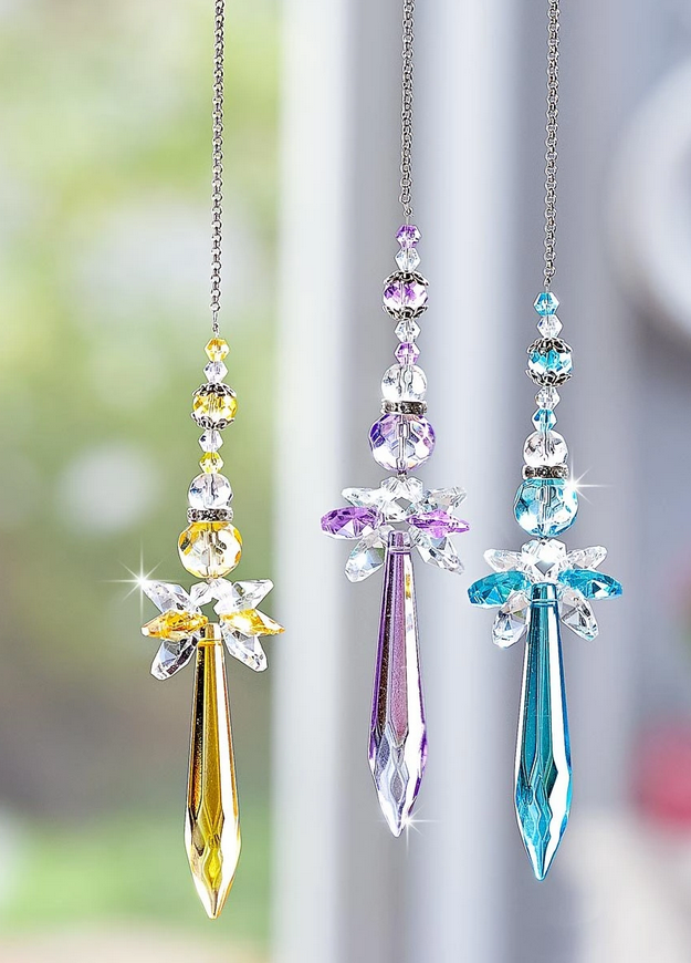 Schutz, Freude, Glück... all das kann dieser Cherub verkörpern. Die Dekoration ist auch als Sonnenfänger bekannt. Die Sonne reflektiert und wirft funkelnde Farbblitze in den Raum. Auch als kleiner Blickfang an einem Spiegel, einer Lampe oder einer Wand ziehen diese dekorativen Anhänger bewundernde Blicke auf sich.