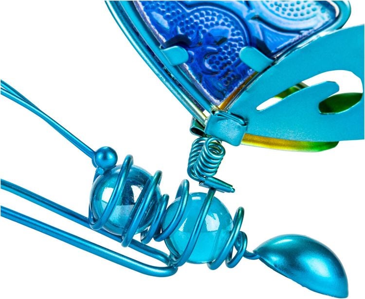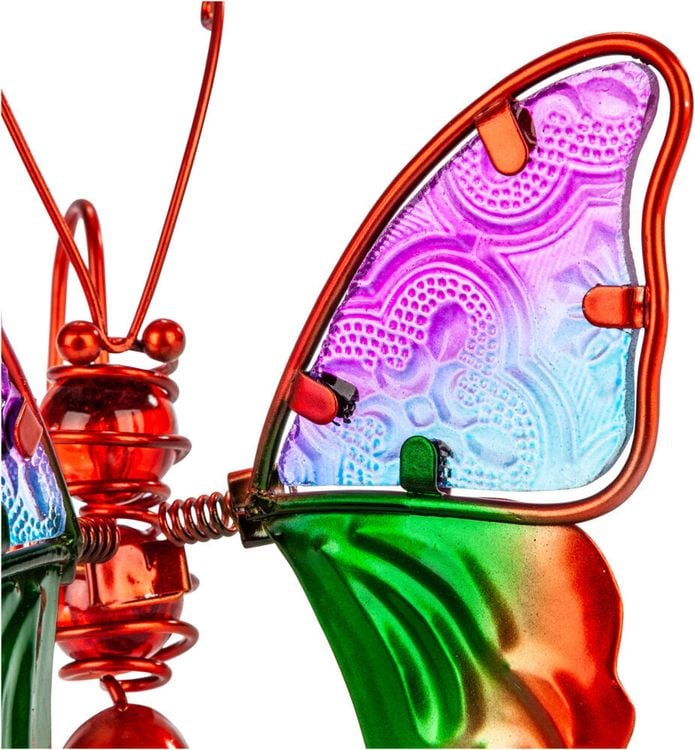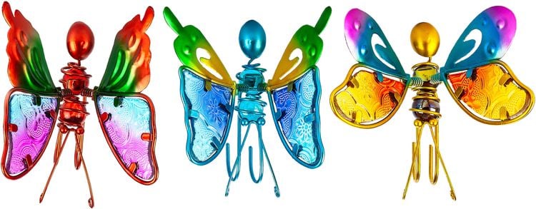 3 Schmetterlinge in Prachtfarben Je 11,5 cm groß Aus Metall mit Farbverläufen Einsätze aus Strukturglas Zum Einhängen, z.B. in Pflanztöpfe Farbtupfer für drinnen & draußen: Dekohänger Schmetterlinge , 3er-Set 3 Prachtexemplare flattern fröhlich in Ihrer Outdoor-Oase und setzen farbenfrohe Akzente in ausdrucksstarken Farben. Von Gelb über Rot, Lila und Blau bis Grün ... daran kann man sich gar nicht sattsehen! Die raffinierten Farbverläufe sind das i-Tüpfelchen auf einer originellen Deko-Idee für drinnen und draußen. Die Kontur der Schmetterlinge ist aus Metall gearbeitet und mit Metallic-Tönen schick in Szene gesetzt. Einsätze aus buntem Strukturglas zieren die Flügel und farbige Glaskugeln ergänzen das Design des Körpers. Die Flügel sind mit Federn am Körper befestigt; bei etwas Wind wippen die Flügelchen in kleinen Bewegungen ein origineller Effekt! Der Clou: Die Beinchen der Schmetterlinge sind so geformt, dass sie in Pflanztöpfen, schmalen Geländern oder Ästen eingehängt bzw. befestigt werden können. Dekohänger Schmetterlinge , 3er-Set aus Metall in kräftigen Metallic-Farben mit Einsätzen und Kugeln aus Glas in bunten Farbtönen Federbefestigung der Flügel Beinchen in Form eines Hakens (zum Einhängen an schmalen Kanten bis 2 cm Breite) Maße: ca. 10 x 9,5 x 11,5 cm Auch eine bezaubernde Geschenk-Idee: Die Dekohänger Schmetterlinge , 3er-Set, sind ein originelles Präsent, das Sie im Set oder einzeln überreichen können. Vielleicht benötigen Sie einmal ein Mitbringsel, mit dem Sie sich für eine Einladung oder Gefälligkeit bedanken möchten? Da sind die bunten Schmetterlinge auf jeden Fall wunderbar geeignet. Sie können sowohl drinnen als auch draußen perfekt dekoriert werden! Jetzt gleich in den Warenkorb legen und noch heute bei uns online kaufen!