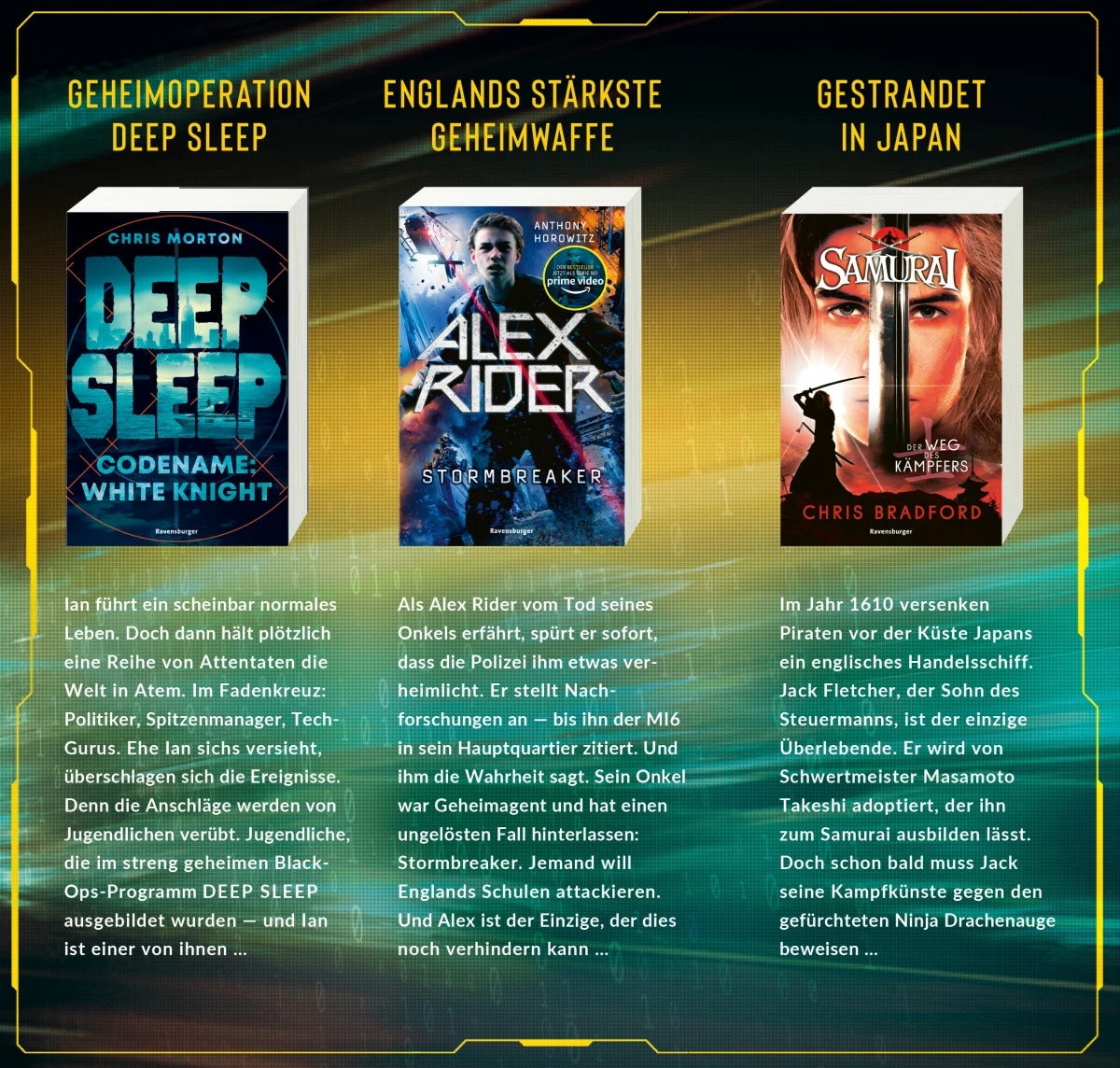 Nur eine Handvoll Eingeweihter weiss über das geheime Ausbildungsprogramm Last Line of Defense Bescheid. Dort werden Jugendliche zu Geheimagenten ausgebildet - sie werden eingesetzt, wenn MI5, MI6 oder andere Spezialeinheiten nicht mehr weiterkommen. Die neusten Rekruten: Jayden D. Knoxville, Leonarda "Lenny" Zarakis und Erik Tuomi. Sie sind Team Omega, das letzte und jüngste Team der Organisation - und landen früher als gedacht mitten in ihrem ersten Einsatz!
