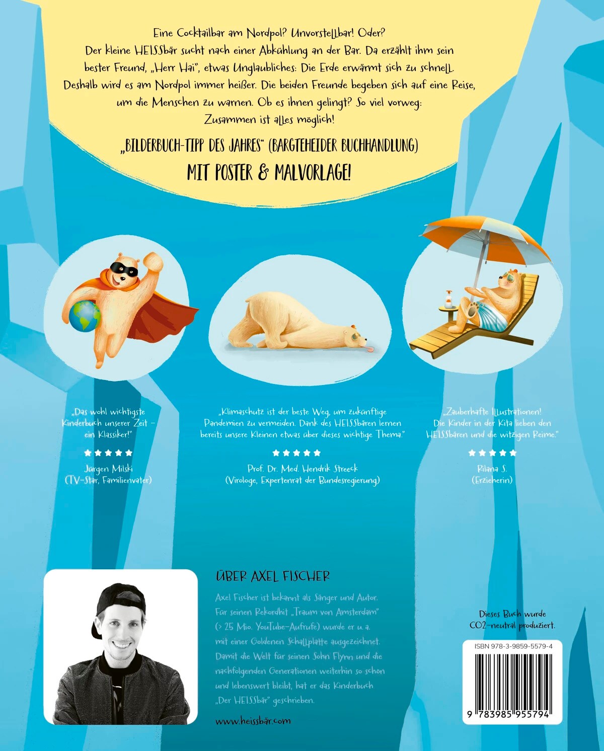 Axel Fischer (geb. 1981) studierte den Pädagogik-Studiengang "Musik in der Kindheit" und ist bekannt als erfolgreicher Sänger und Autor. Für seinen Rekordhit "Traum von Amsterdam" (über 25 Mio. YouTube Aufrufe) wurde er u.a. mit einer Goldenen Schallplatte ausgezeichnet. Axel wünscht sich, dass für seinen Sohn Flynn und die nachfolgenden Generationen die Welt so wunderschön und lebenswert bleibt. So entstand die Idee zum Kinderbuch "Der HEISSbär". Die zahlreichen liebevollen und detailreichen Illustrationen des Bilderbuches stammen von der Ukrainerin Maryna Skyba, die ihre Heimat aufgrund des Krieges verlassen musste und das Buch auf ihrer Reise ins Exil illustrierte.