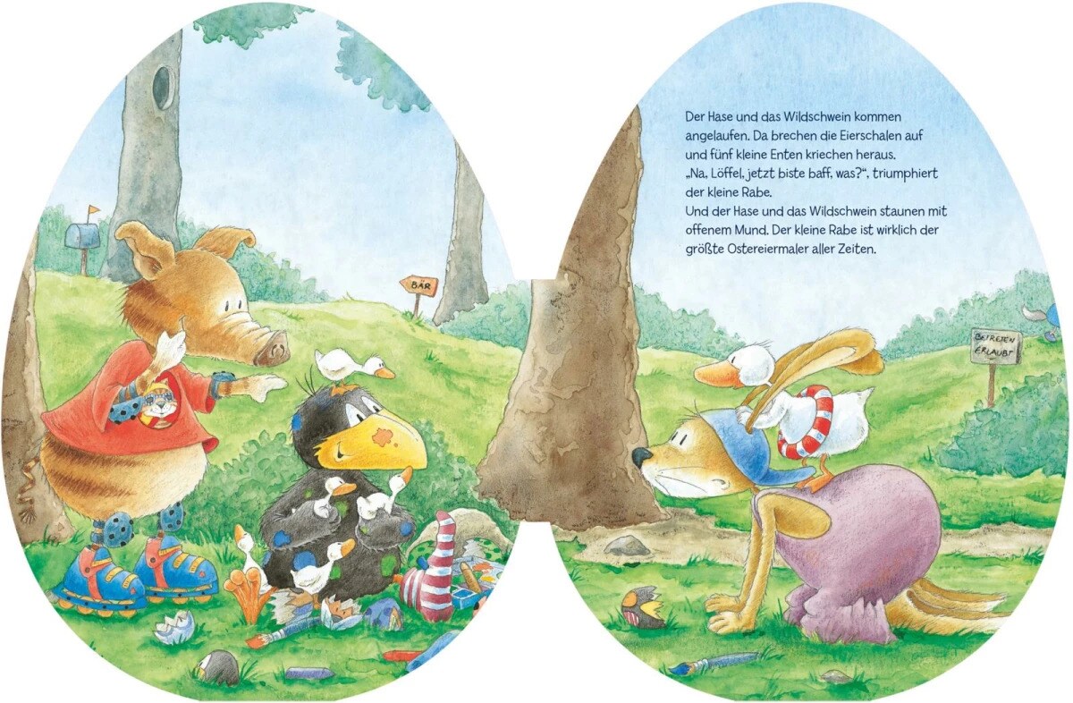 Alles im Ei! - Fröhliche Ostergeschichte für Kinder ab 3 Jahren mit rabenstarker Osterdeko als ExtraDer kleine Rabe Socke ist im Osterfieber. Er will dem Hasen und dem Wildschwein beim Eierbemalen helfen, aber die beiden schicken ihn weg. Das lässt der kleine Rabe nicht auf sich sitzen. Als er unbemalte Eier in einem Nest entdeckt, macht er sich sofort ans Werk - und erlebt, was für süsse Überraschungen in echten (Oster-)Eiern stecken können.