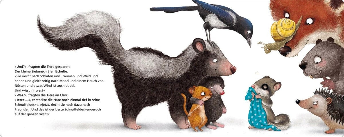 Der kleine Siebenschläfer kann seine geliebte Schnuffeldecke nicht mehr finden. Was für eine Katastrophe! Zum Glück sind seine Freunde sofort zur Stelle. Gemeinsam krempeln sie den ganzen Wald auf links und lassen sich so einiges einfallen, um den kleinen Siebenschläfer zu trösten. Wer kann schon ahnen, dass die Siebenschläfermama und der grosse Waschtag etwas mit der Sache zu tun haben und die Schnuffeldecke vielleicht gar nicht so weit weg ist wie gedacht ...