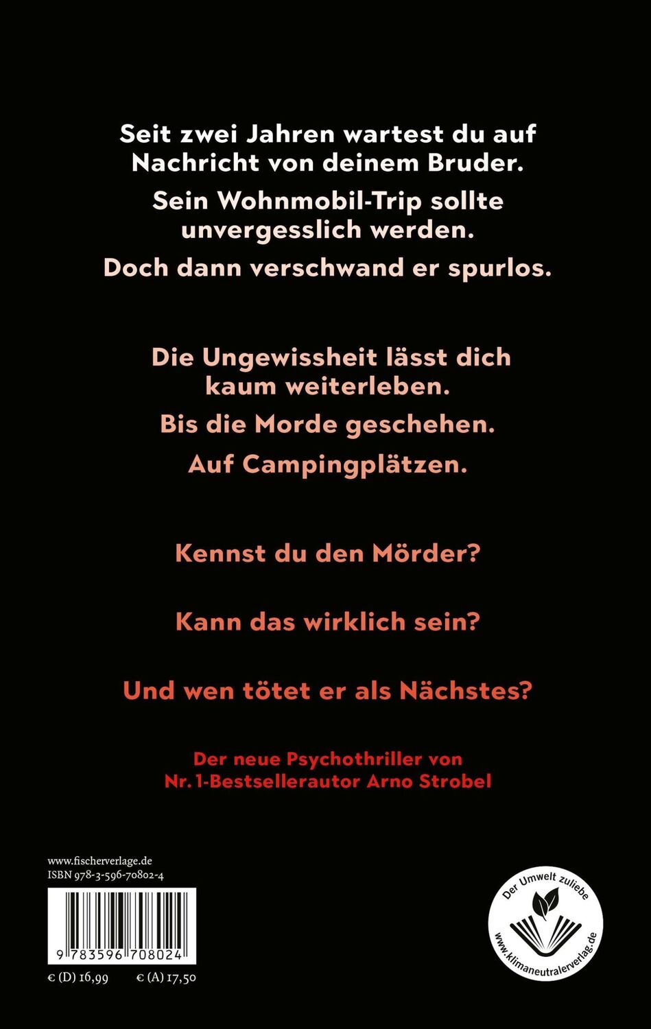 Seit zwei Jahren wartest du auf ein Lebenszeichen von deinem Bruder. Sein Wohnmobil-Trip sollte unvergesslich werden. Aber seither keine Spur von ihm. Bis die Morde geschehen ...Der neue Psycho-Thriller von Nr.1-Bestseller-Autor Arno Strobel
