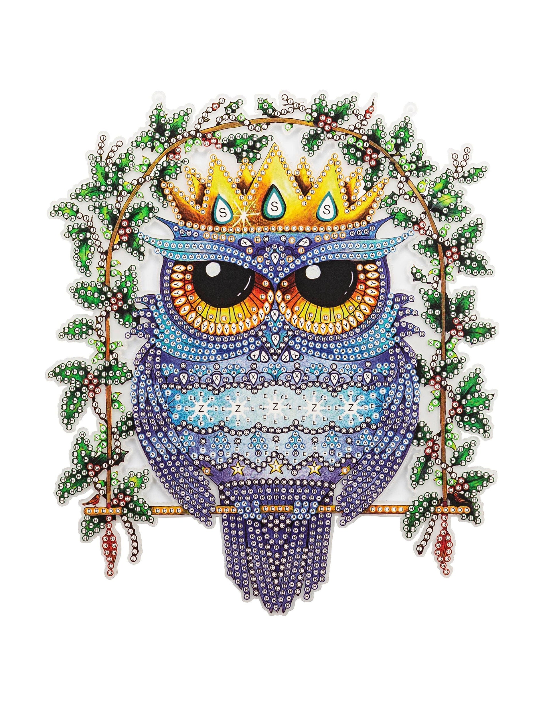 Schuhu! Hier kommt das Komplett-Set für eine majestätische Eule. Mit blau funkelndem Gefieder und goldener Krone schmückt sie Türen oder Wände. Viele größere Steine in extra shapes machen die Eule besonders effektvoll und das Basteln macht noch mehr Spaß!