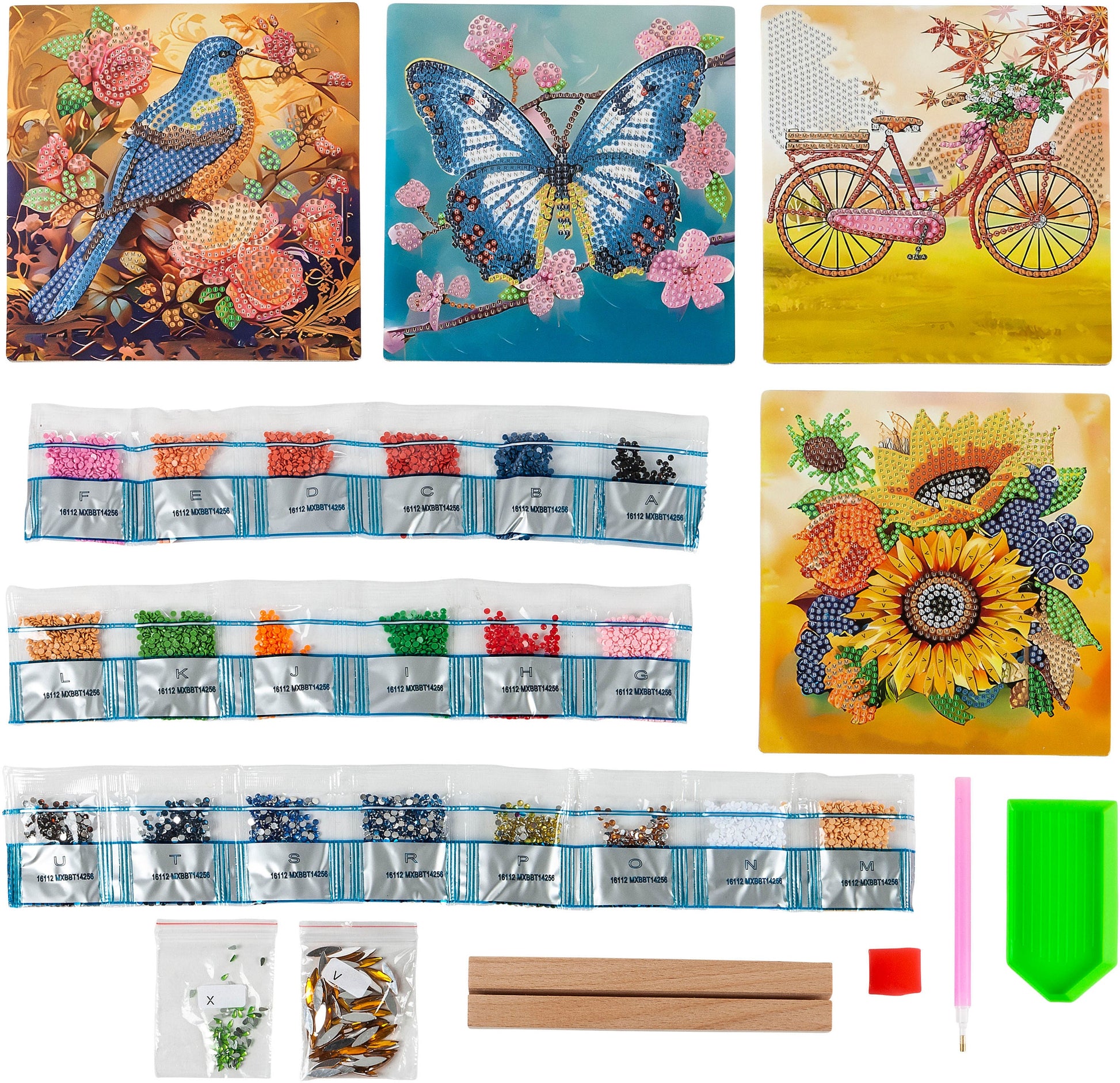 Diamond Painting mit Kartenhalter 15 x 15 cm, 4er-Set