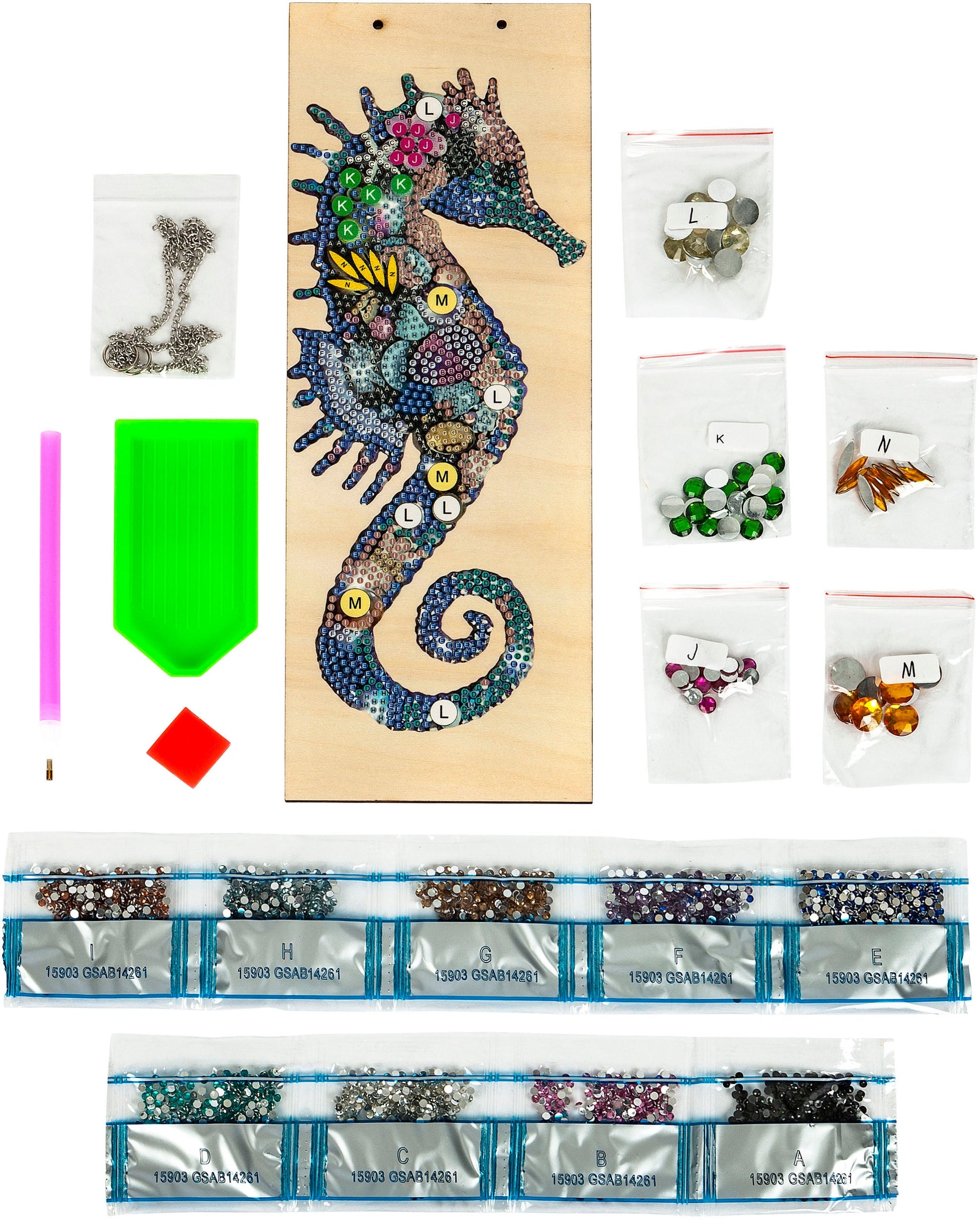 Eine entspannende Bastelei mit wunderbarem Ergebnis: Das Diamond Painting „Seepferdchen“ wächst vor Ihren Augen zu einem prächtigen Kunstwerk heran. Für Sie selbst, als Wanddeko ... oder als Geschenk-Idee für einen lieben Menschen.