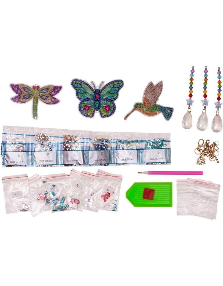 Diamond Painting Sonnenfänger "Libelle, Schmetterling, Kolibri" 3er-Set