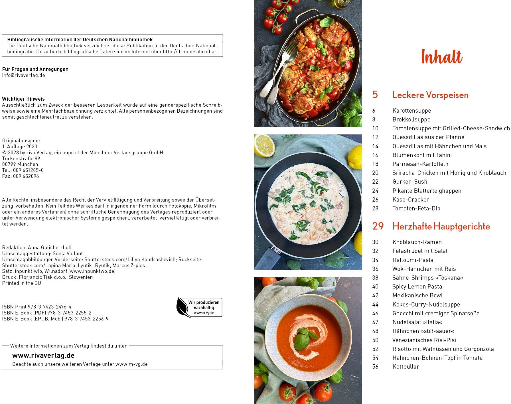 Kochen war noch nie so einfach!Mit diesem Kochbuch gelingen dir in kürzester Zeit unfassbar leckere Gerichte ganz ohne komplizierte Zubereitung oder lange Zutatenlisten. Die abwechslungsreichen Mahlzeiten sind absolut stressfrei nachzukochen und inspirieren Kochmuffel, Eltern und Singles gleichermassen, im Handumdrehen in der Küche etwas zu zaubern, was allen schmeckt und satt macht. Egal ob süss oder herzhaft, vegetarisch, vegan, mit Fleisch oder Fisch: Hier findest du blitzschnelle Rezeptideen. Die Vorspeisen, Hauptgerichte und Desserts überzeugen mit ihrer Vielfältigkeit und Alltagstauglichkeit. Von Quesadillas aus der Pfanne über Gnocchi mit cremiger Spinatsosse bis hin zu luftigem Blaubeerkuchen vom Blech: super easy und super lecker!