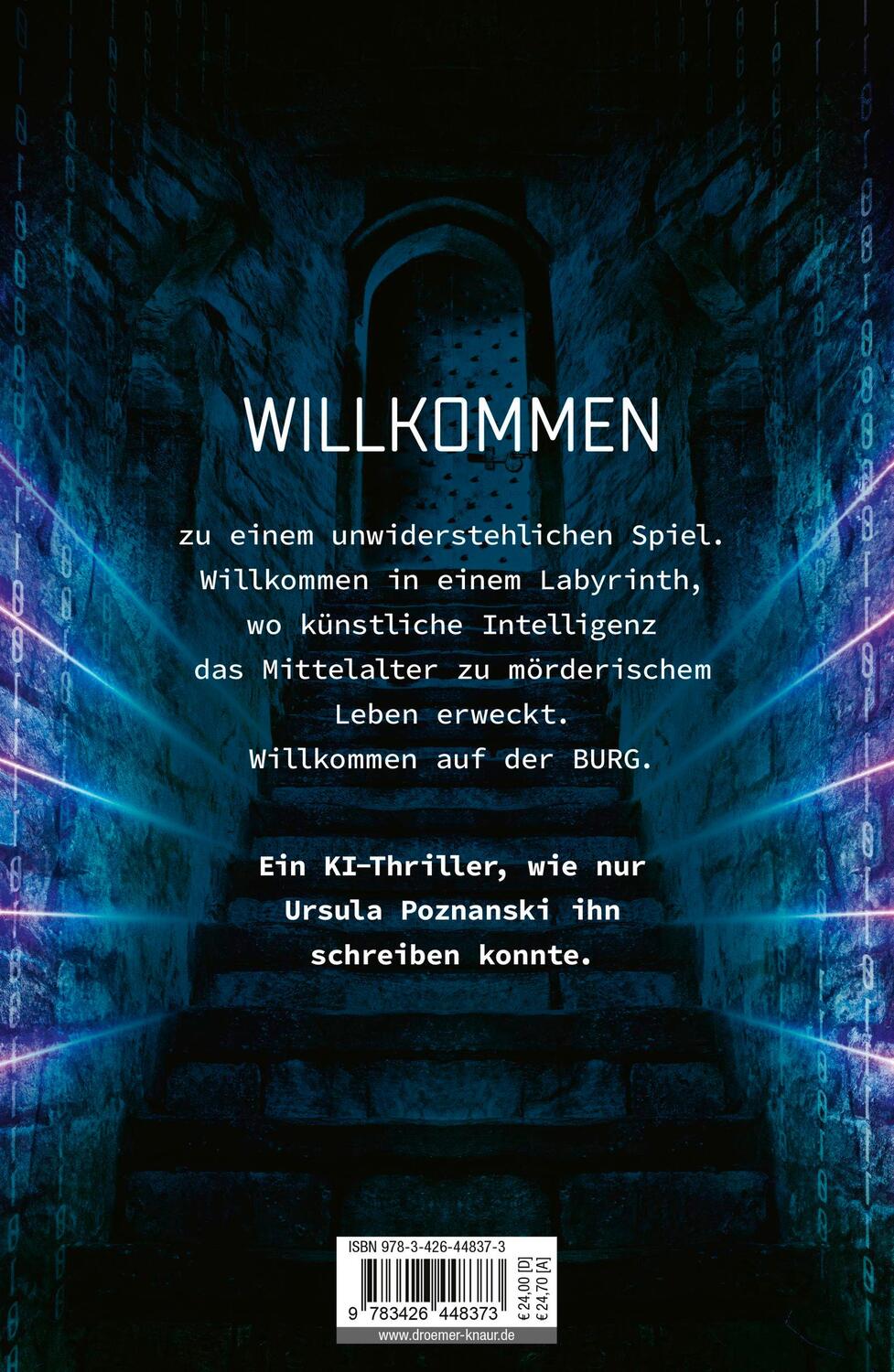 Willkommen zu einem mörderischen Escape Game: Der KI-Thriller »Die Burg« von Bestseller-Autorin Ursula Poznanski kombiniert Mittelalter-Atmosphäre mit einem top-aktuellen KI-Szenario zu Nervenkitzel, der atemlos macht!Es hat ihn buchstäblich Unsummen gekostet - doch Milliardär Nevio hat die halbverfallene Burg Greiffenau nicht nur einfach instandsetzen lassen: Die unterirdischen Geheimgänge, Gruften und Verliese wurden mithilfe modernster Technik zu einer einzigartigen Escape-Welt ausgebaut. Eine künstliche Intelligenz sorgt dafür, dass das Spiel auf jede Besuchergruppe individuell zugeschnitten ist. Ob mittelalterliche Festung, Vampirschloss oder Fantasywelt - Burg Greiffenau kann alles sein, was sich die Spieler wünschen. Um sein grandioses Werk zu testen, lädt Nevio eine bunt zusammengewürfelte Gruppe von Experten ein. Niemand ahnt, dass die KI längst beschlossen hat, ihr eigenes Spiel zu spielen. Und darin ist ein Happy End nicht vorgesehen.